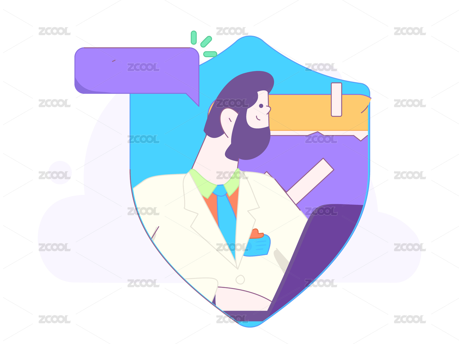 医生,卡通,医疗,保险,保单,疾病,保护,意外,盾牌,治疗