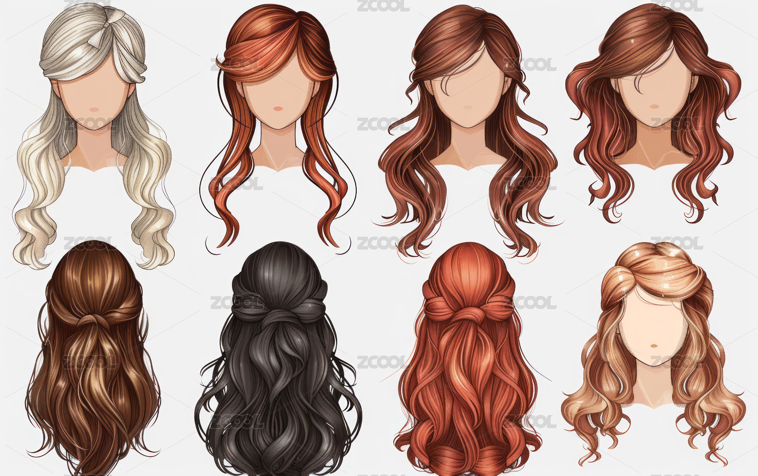 头发,发型,参考图,假发,插画,发色,示意图,柔顺,丝滑,洗发水