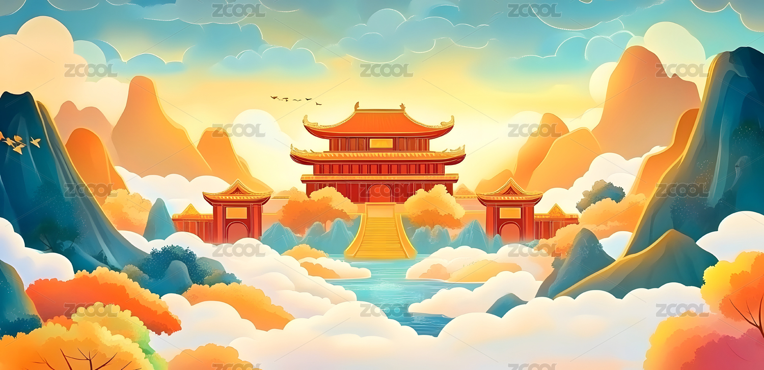 国潮风格中式古代建筑中国宫殿场景