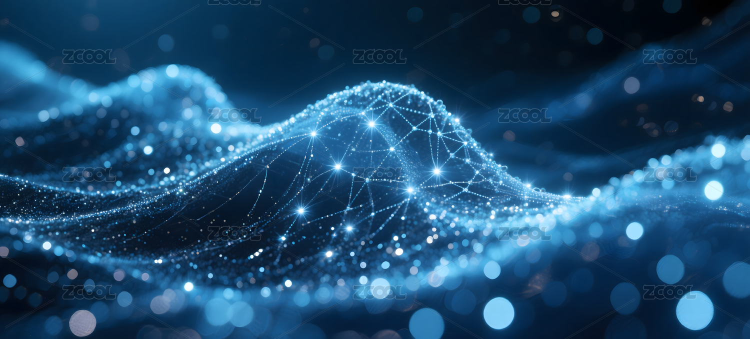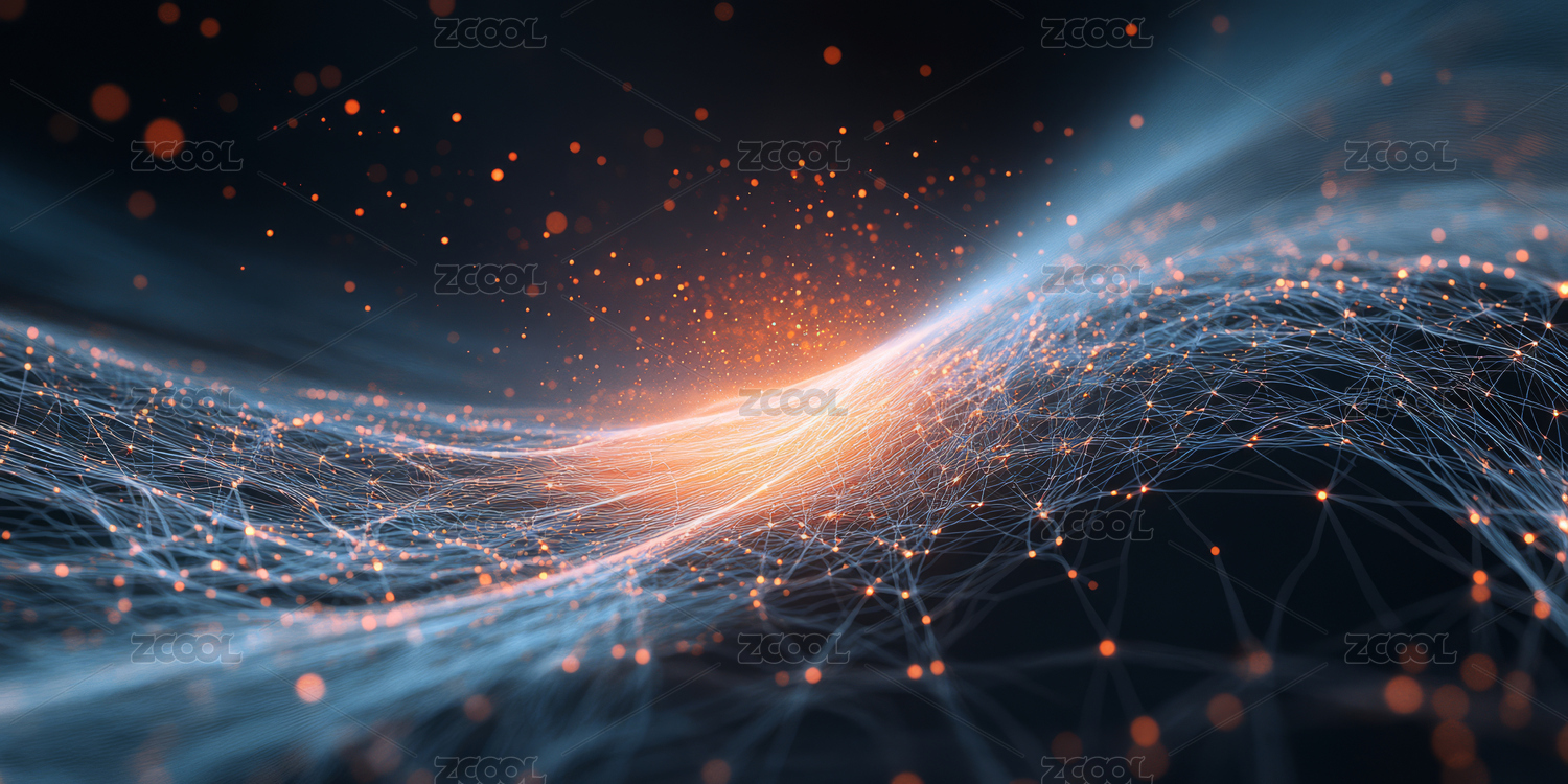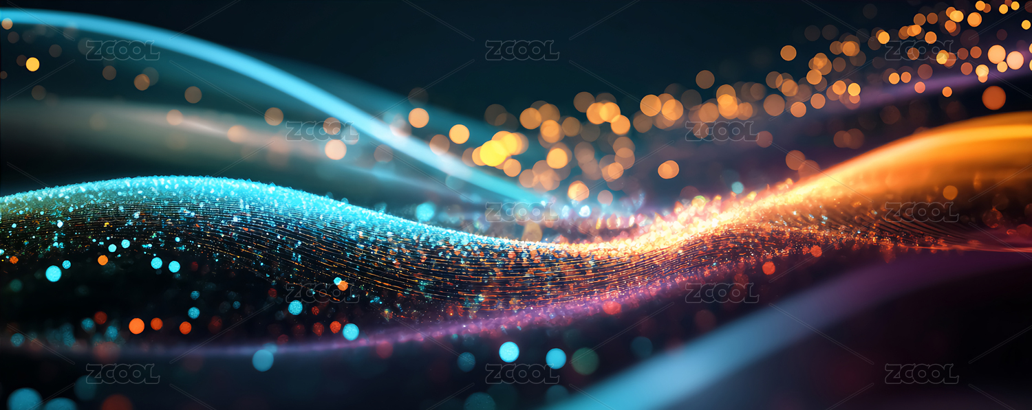科技感波浪线条与光点图案