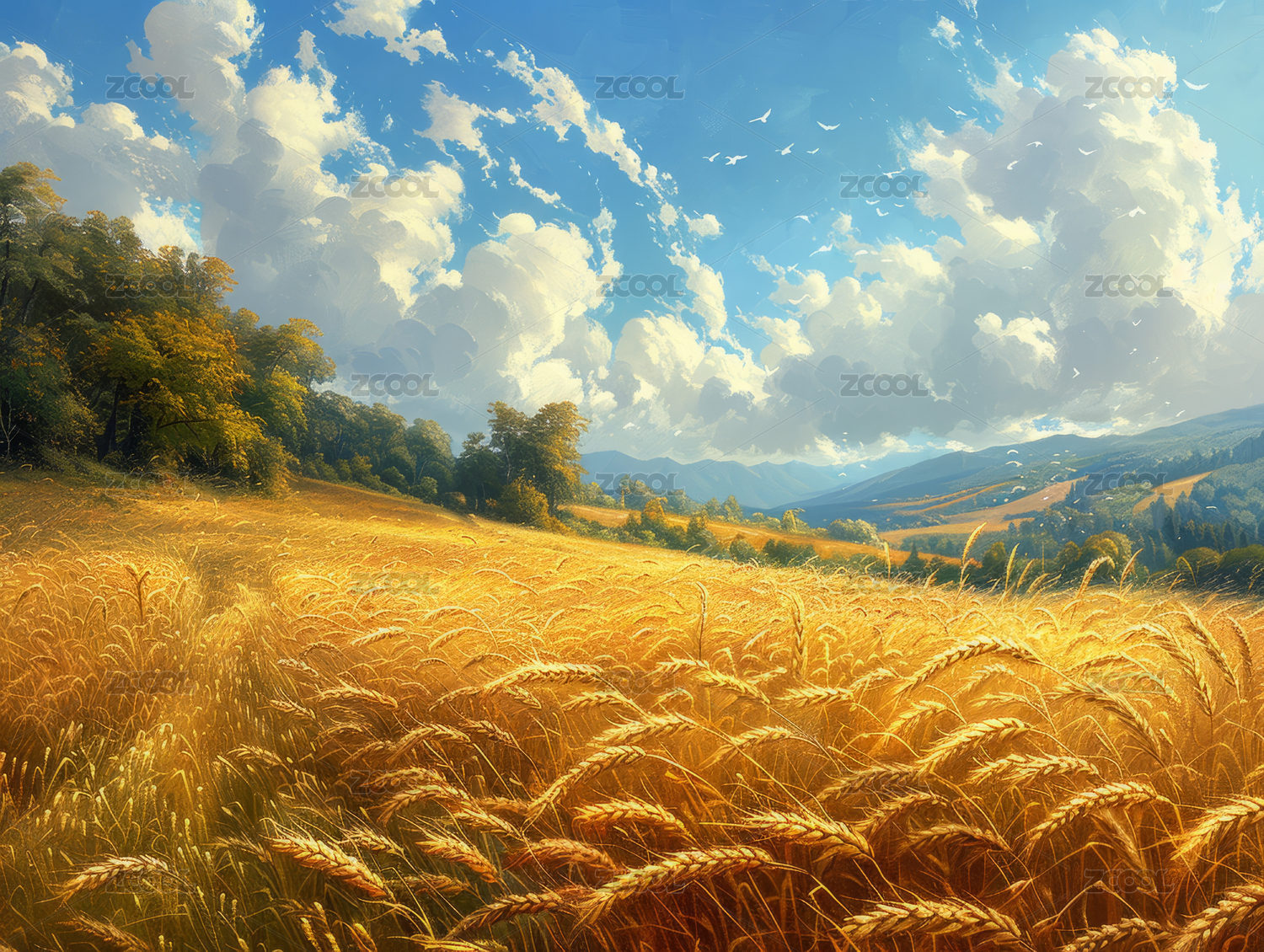 AI,插画,绘画,背景,壁纸,平面,装饰画,田野,麦田,农田
