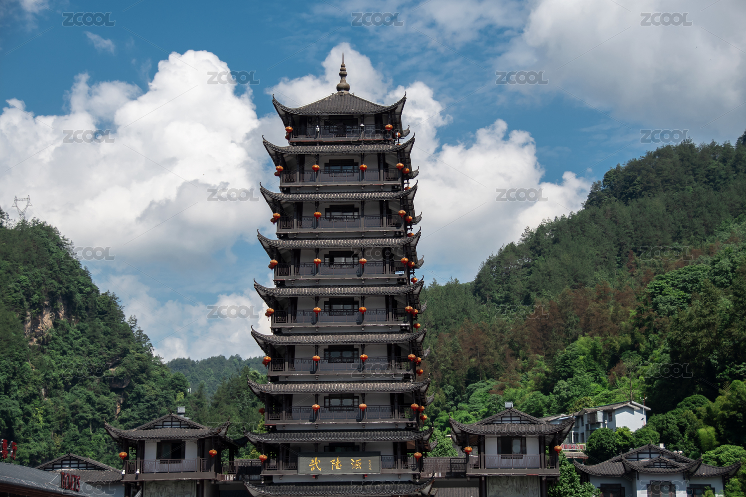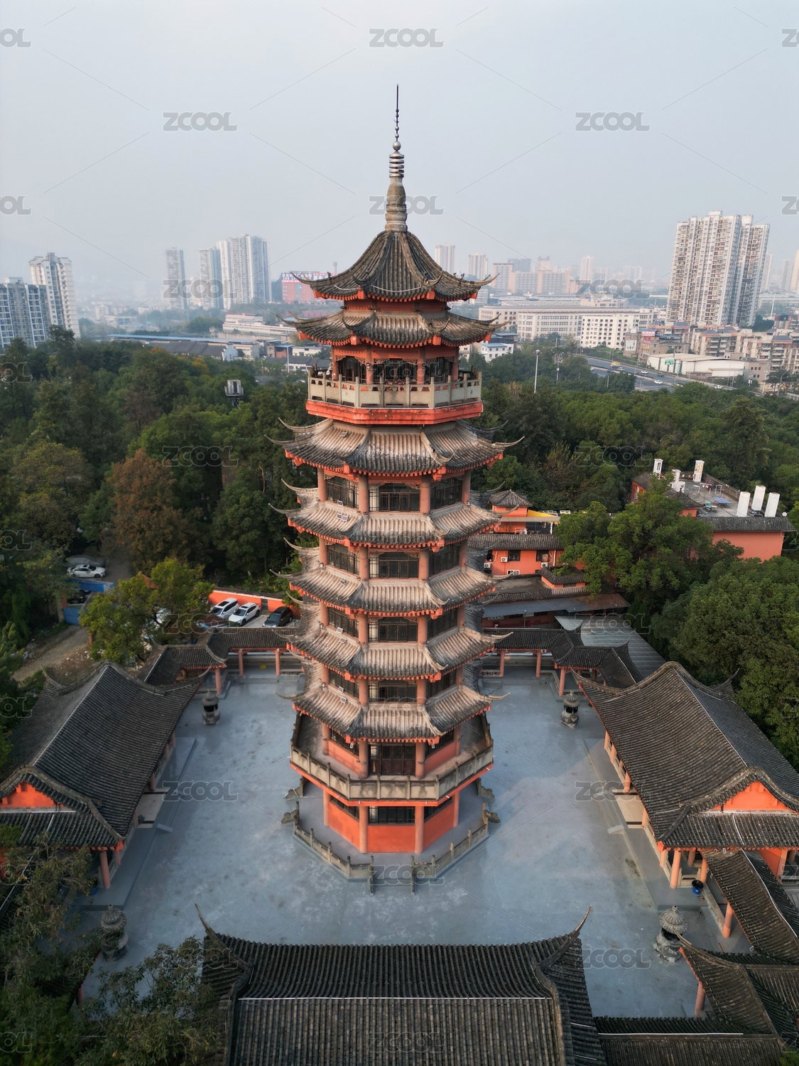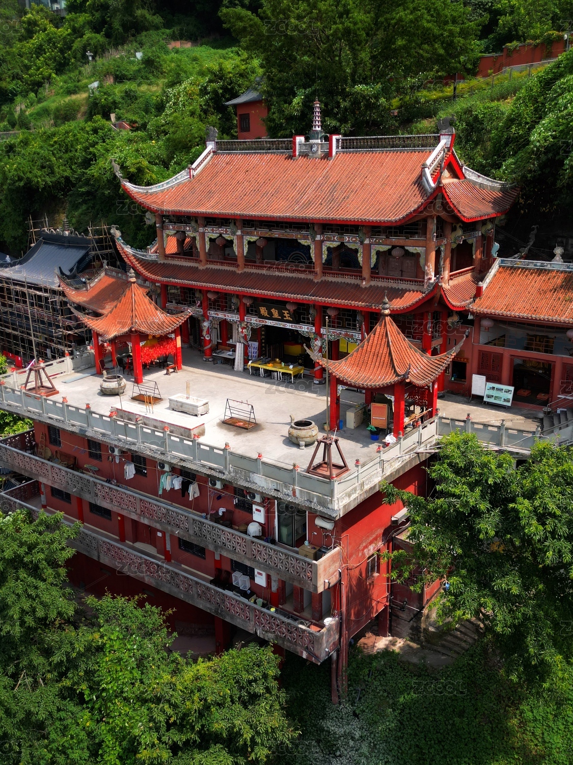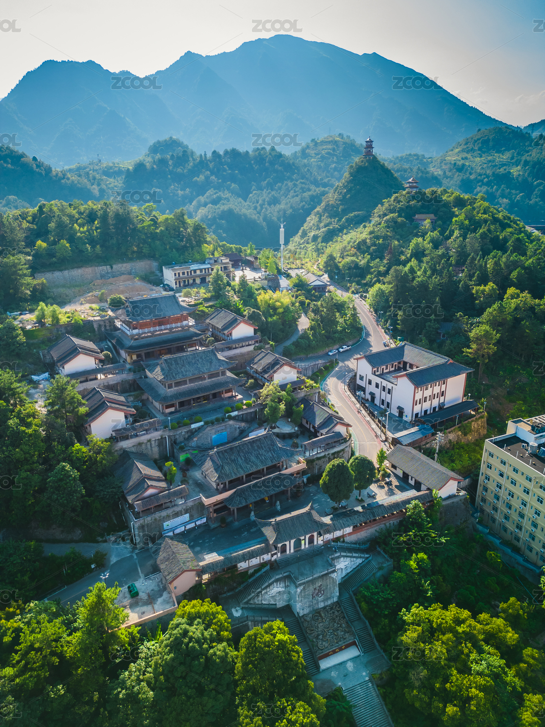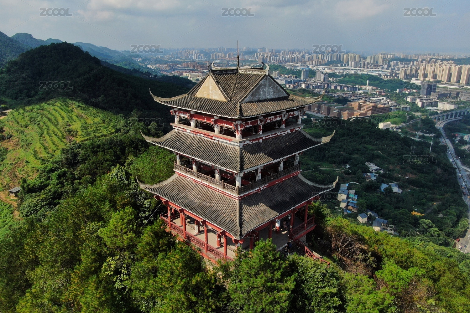 中国四川省巴中市南龛山飞霞阁园林建筑