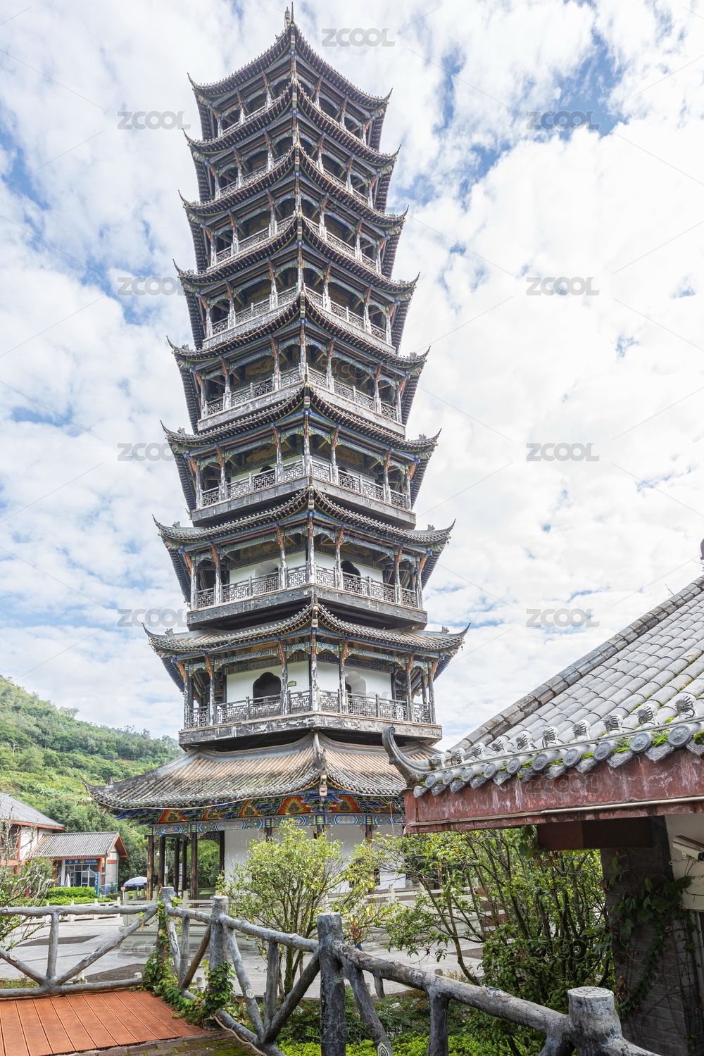 中国福建福州西禅寺报恩塔和五百罗汉堂风光