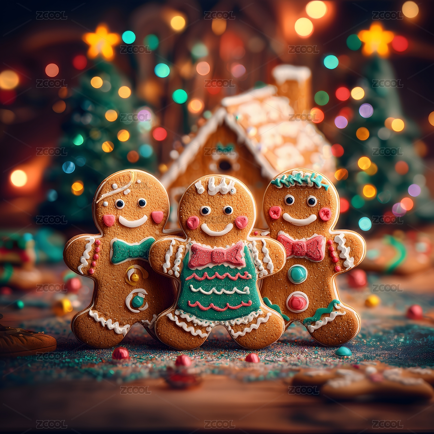 姜饼小人雪夜欢舞圣诞小镇温馨满溢