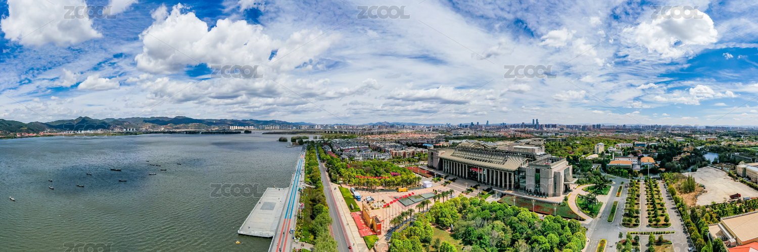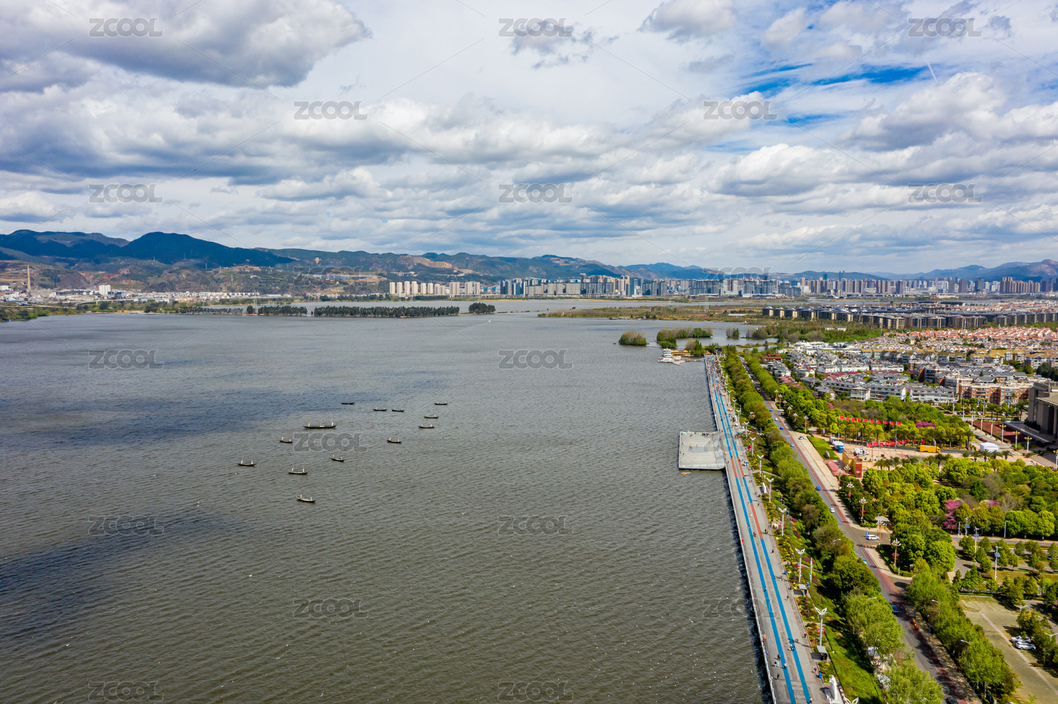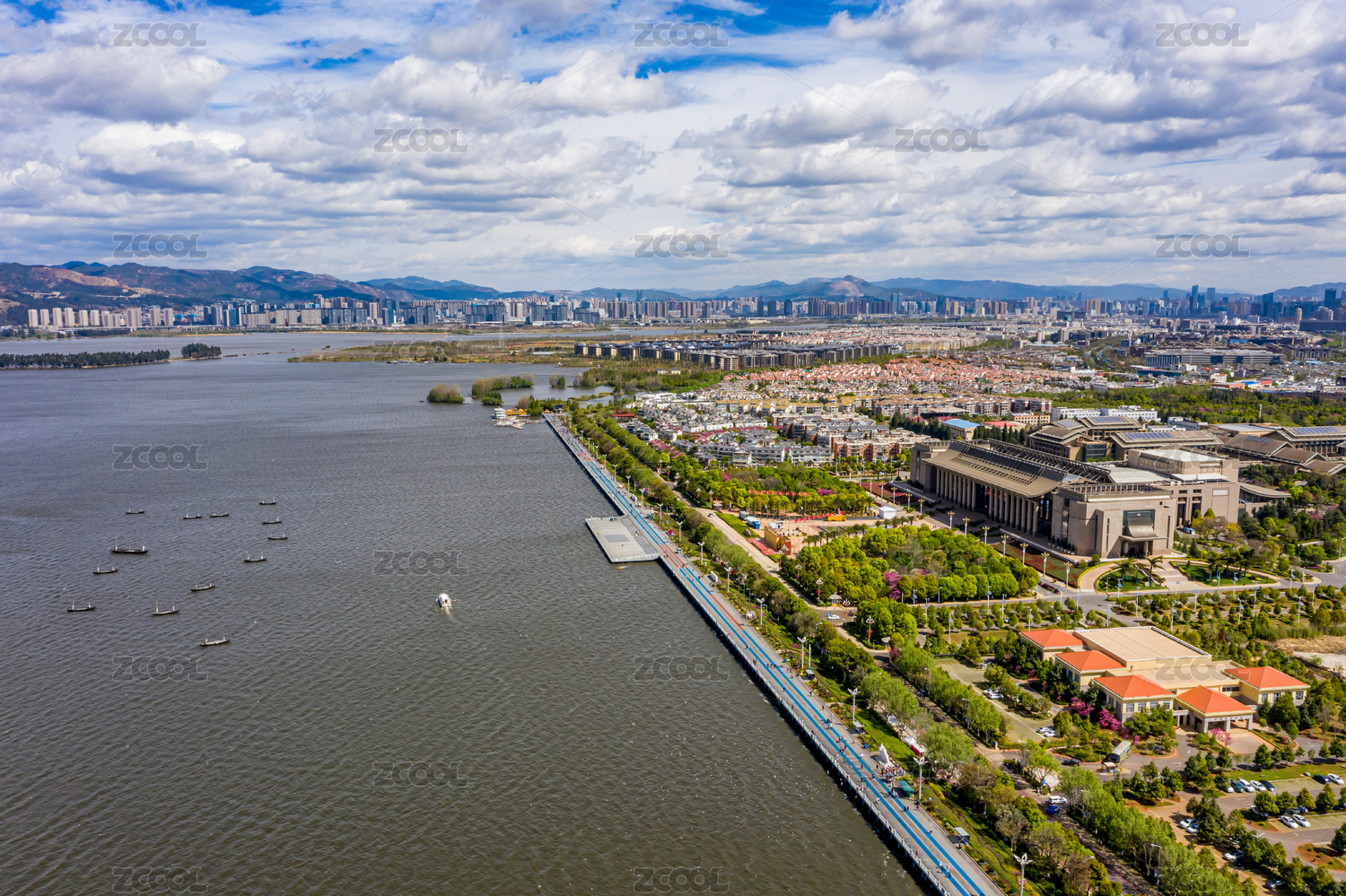 云南,昆明,海埂大坝,航拍,滇池,滇海,湖泊,昆明天际线,昆明地标,标志性建筑