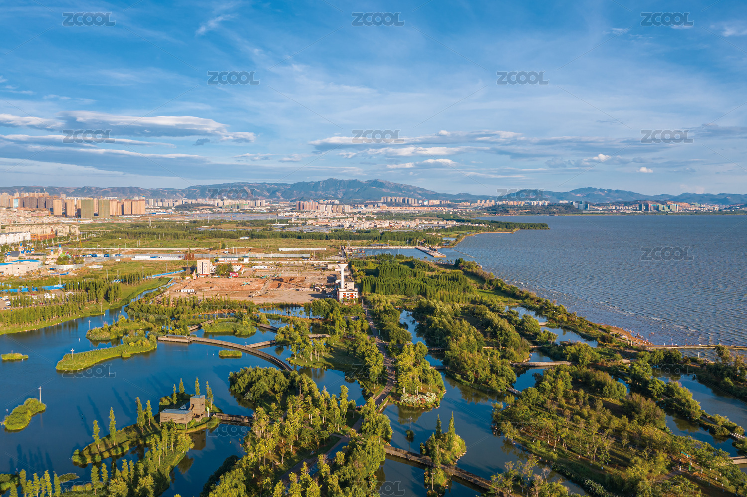 航拍云南昆明滇池星海半岛湿地公园生态自然