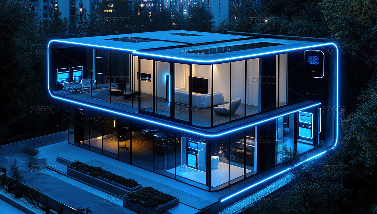 未来科技智能家居夜晚梦幻景象