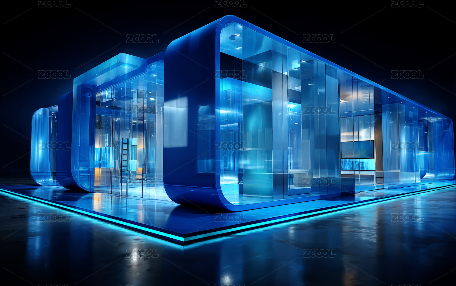 现代蓝色发光玻璃建筑