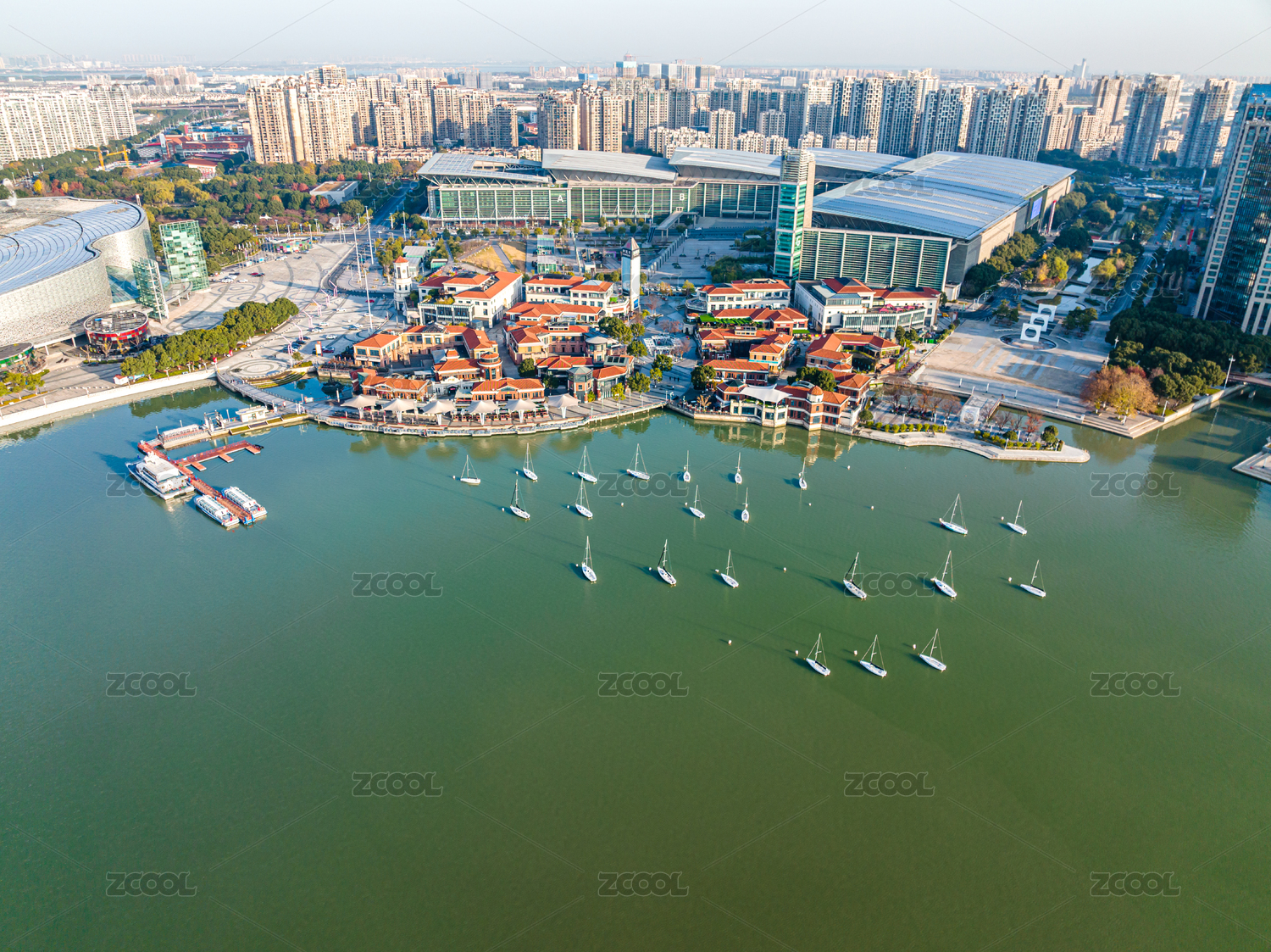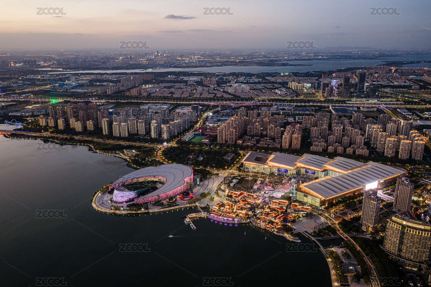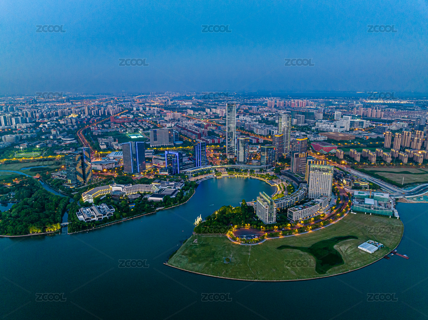 苏州,夜景,黄昏,金鸡湖,苏州工业园区,旅游,航拍,全景,城市,风光