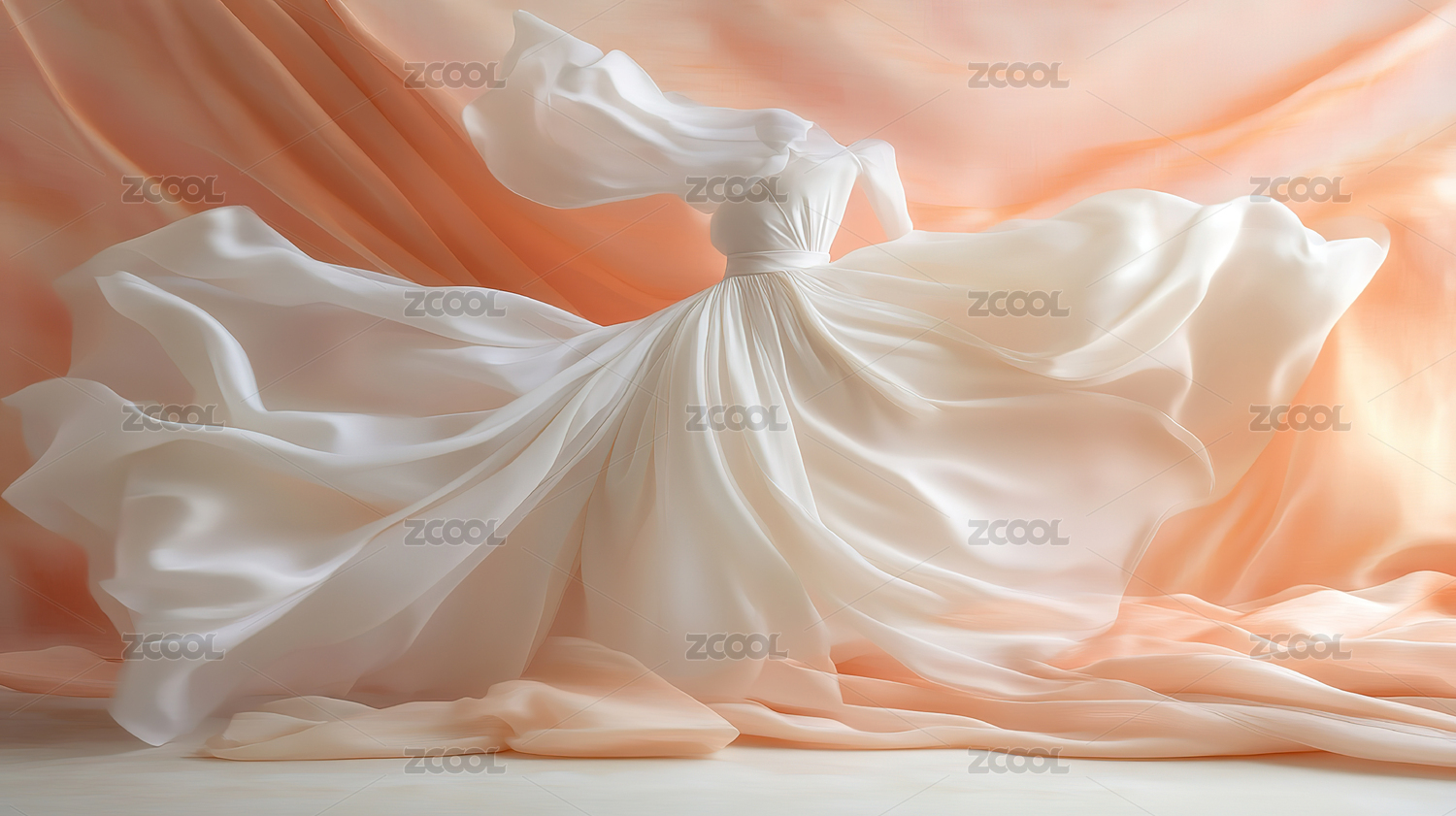 柔和光线中摆动的洁白婚纱