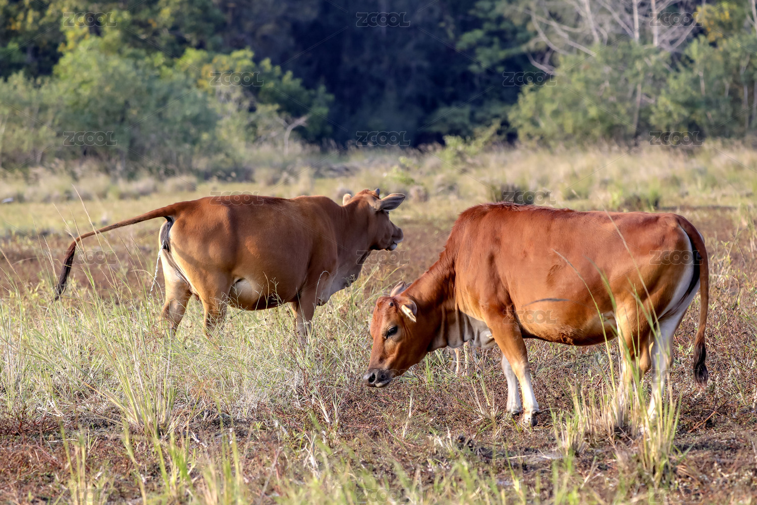 中国海南哺乳动物黄牛和白鹭图