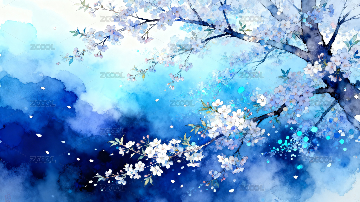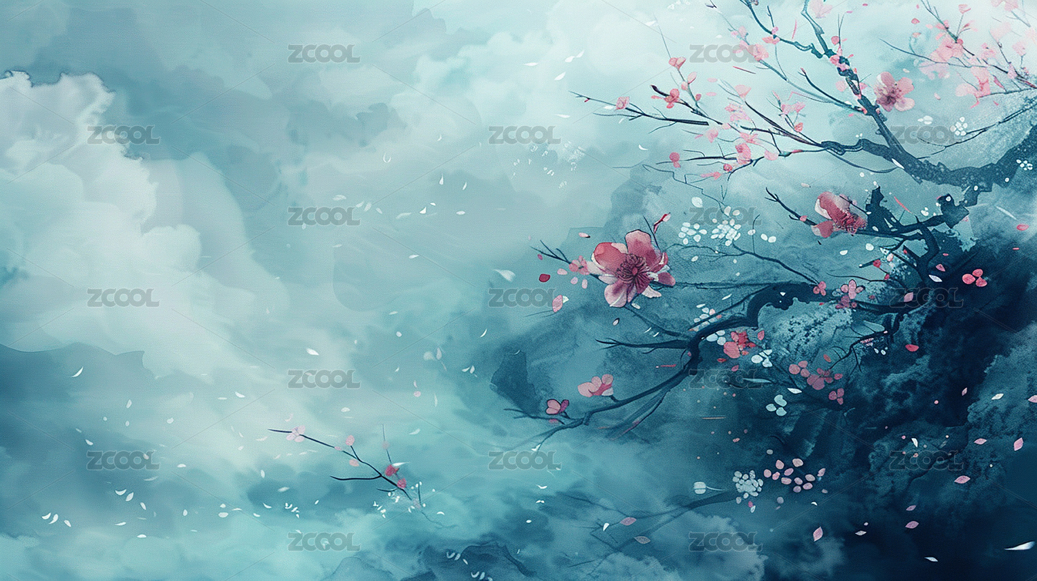 花,落花,树枝,水面,古风,波纹,水墨,水墨画,古典,国潮