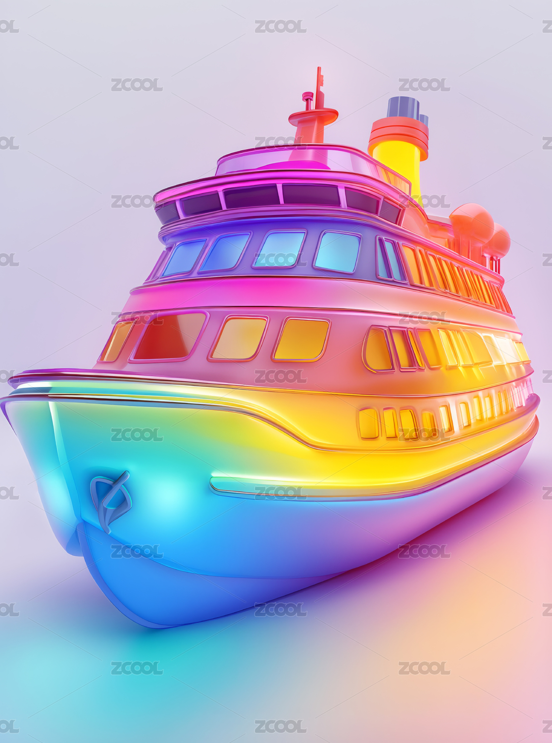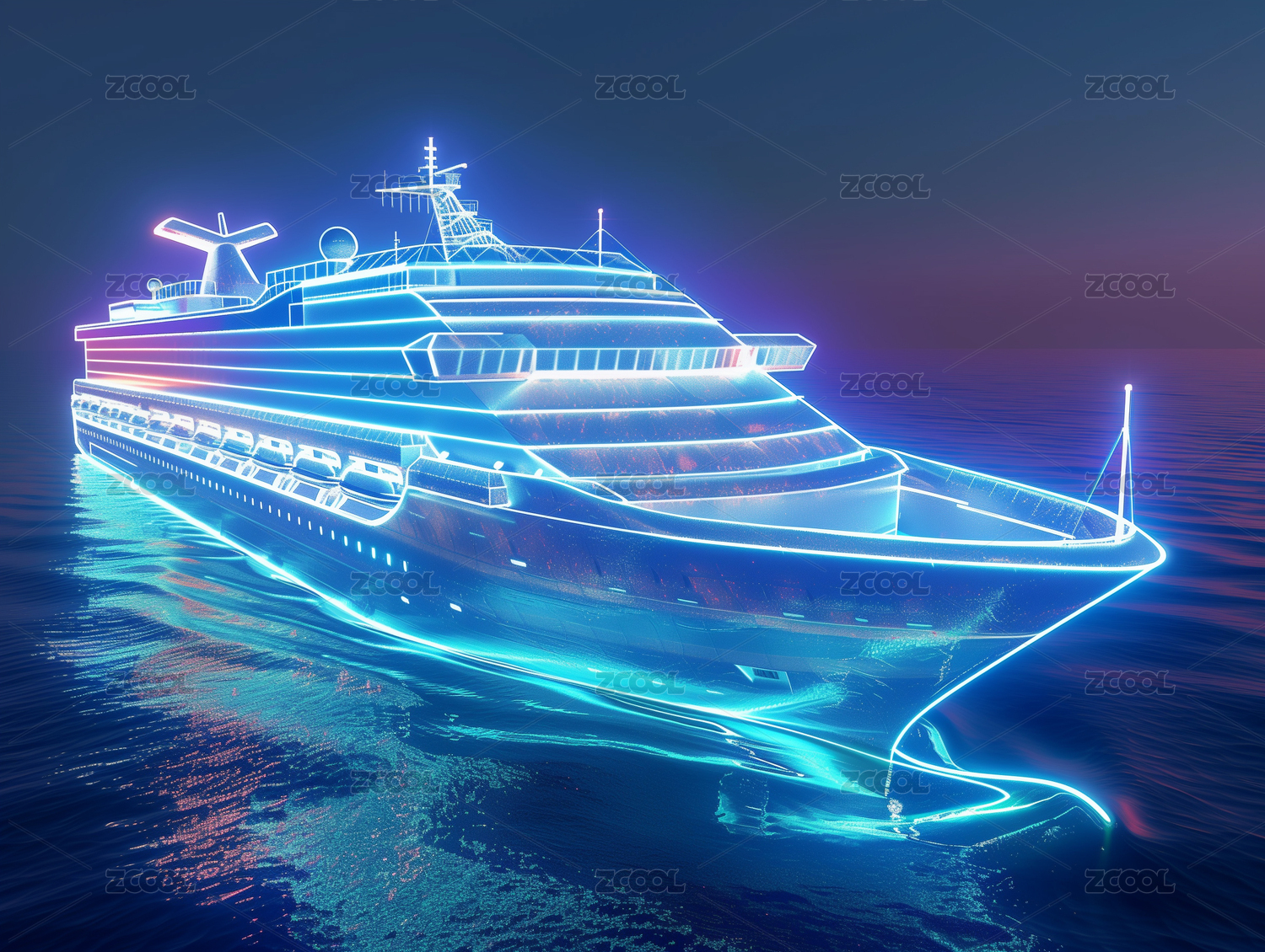 轮船,快艇,船,小船,玻璃,透明,彩色,发光,可爱,黑色背景