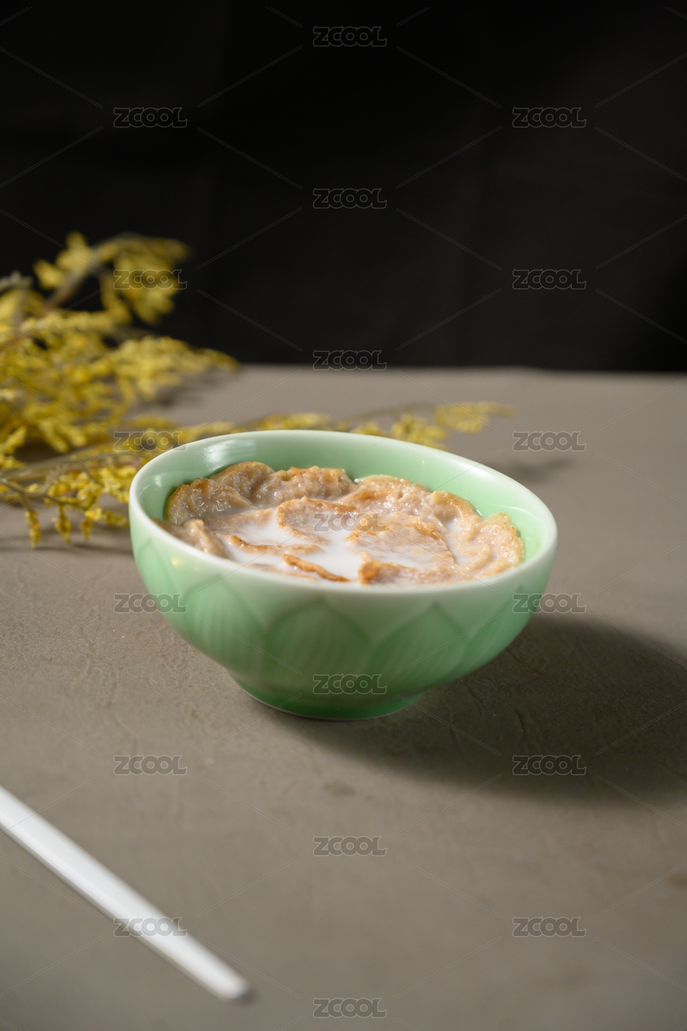 桌面上的碗里的美味可口的牛奶炖桃胶