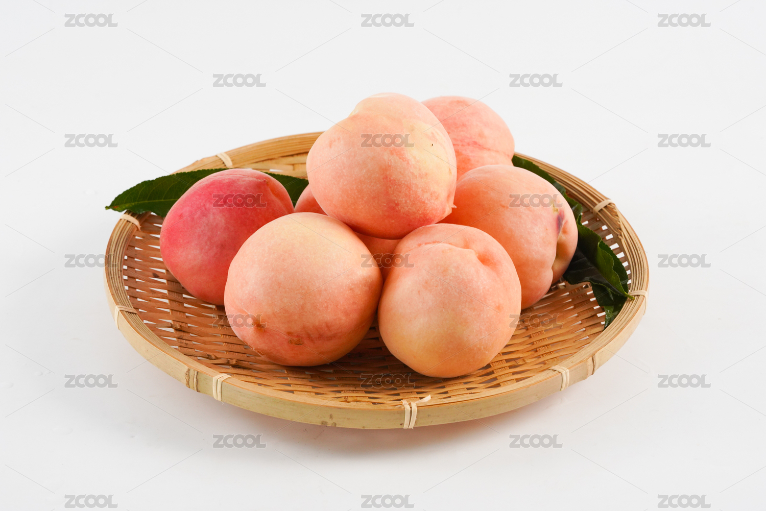 白背景上一盆新鲜桃子