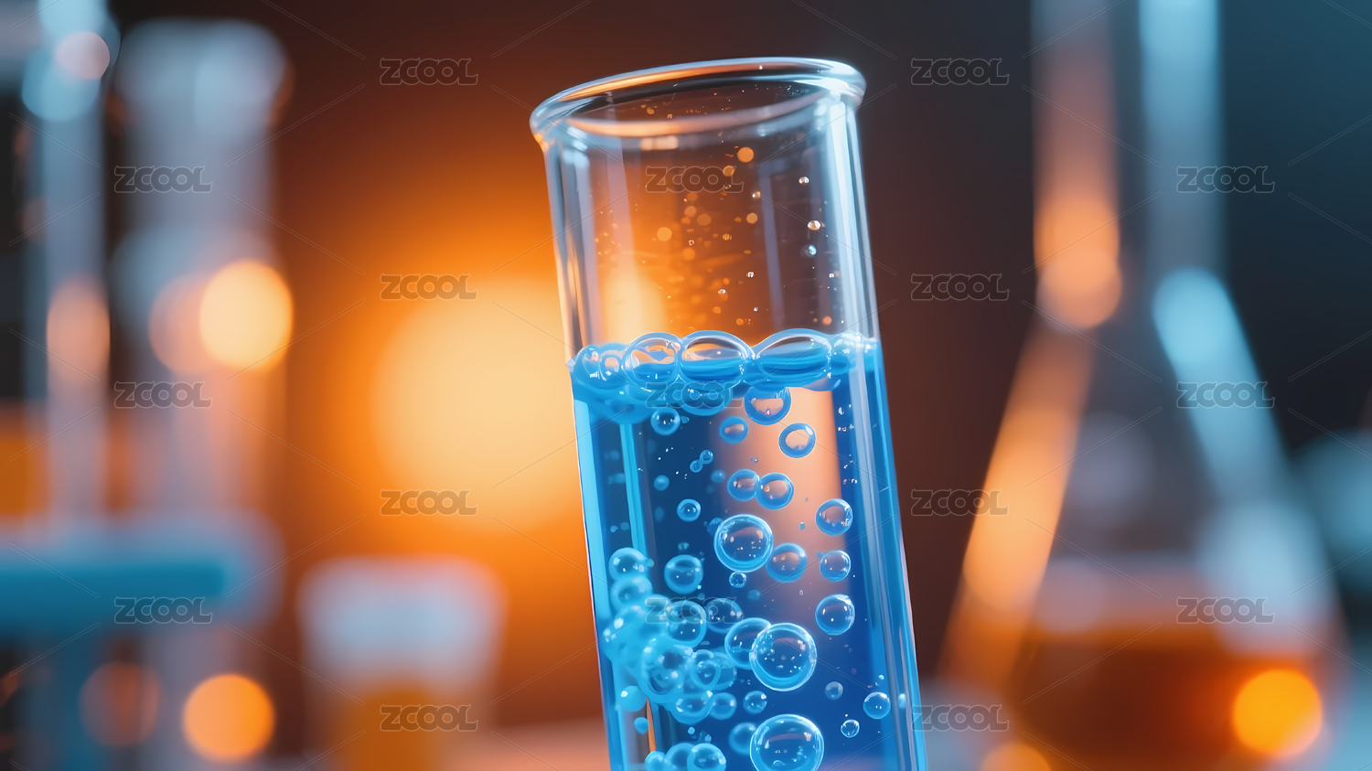 蓝色液体试管科学实验