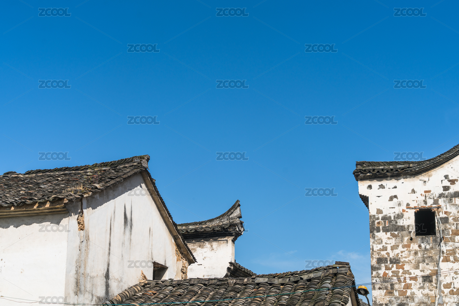 徽式民居白墙黛瓦,中国安徽省黟县卢村