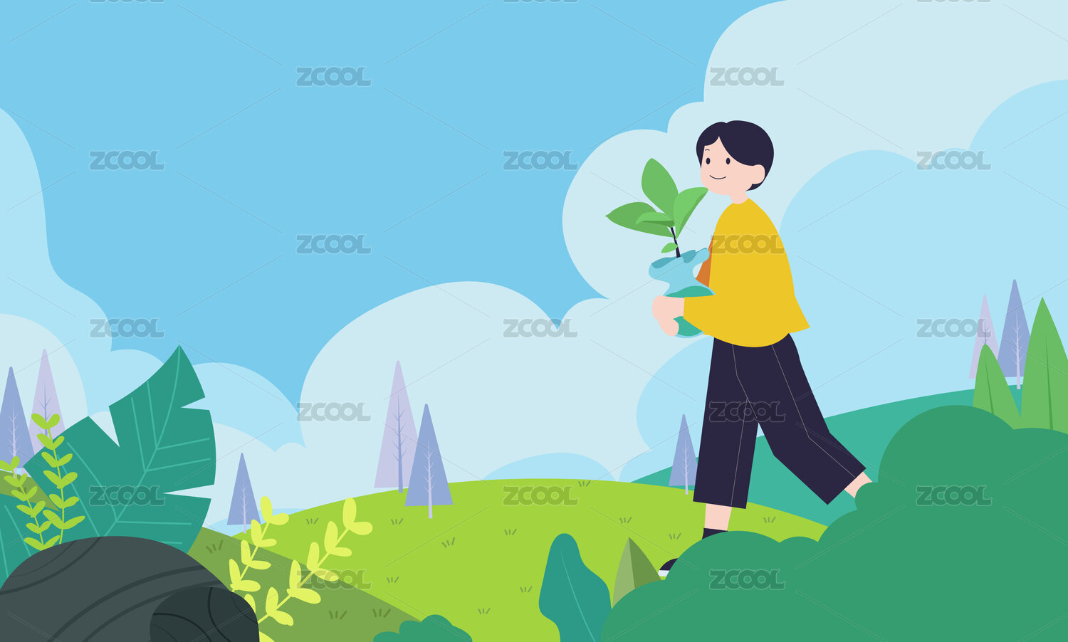 卡通人物夏季踏青旅游登山风景出行矢量插画