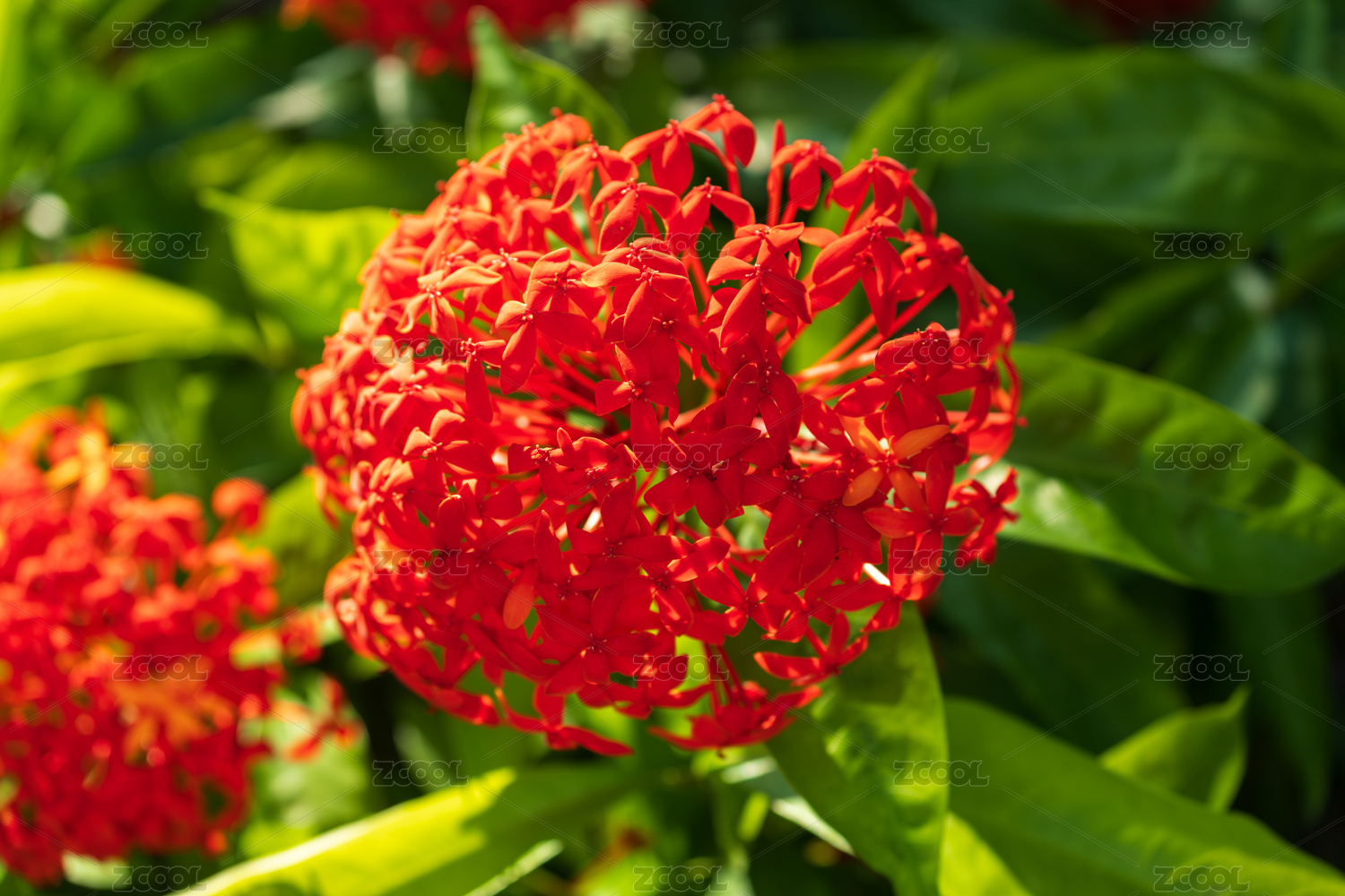 中国,云南省,景洪市,特写,龙船花,红色龙船花,户外,漂亮,美丽,茂盛
