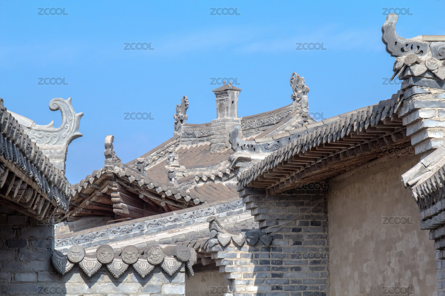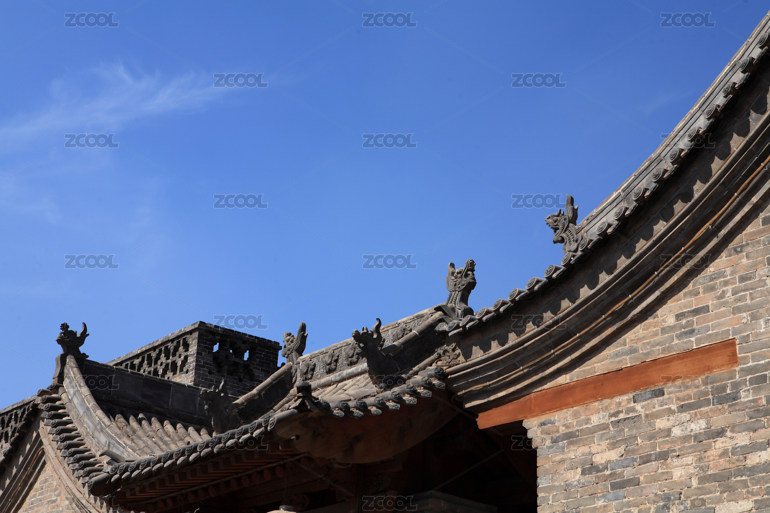 中国山西省平遥县古城民宅屋檐斗拱园林建筑