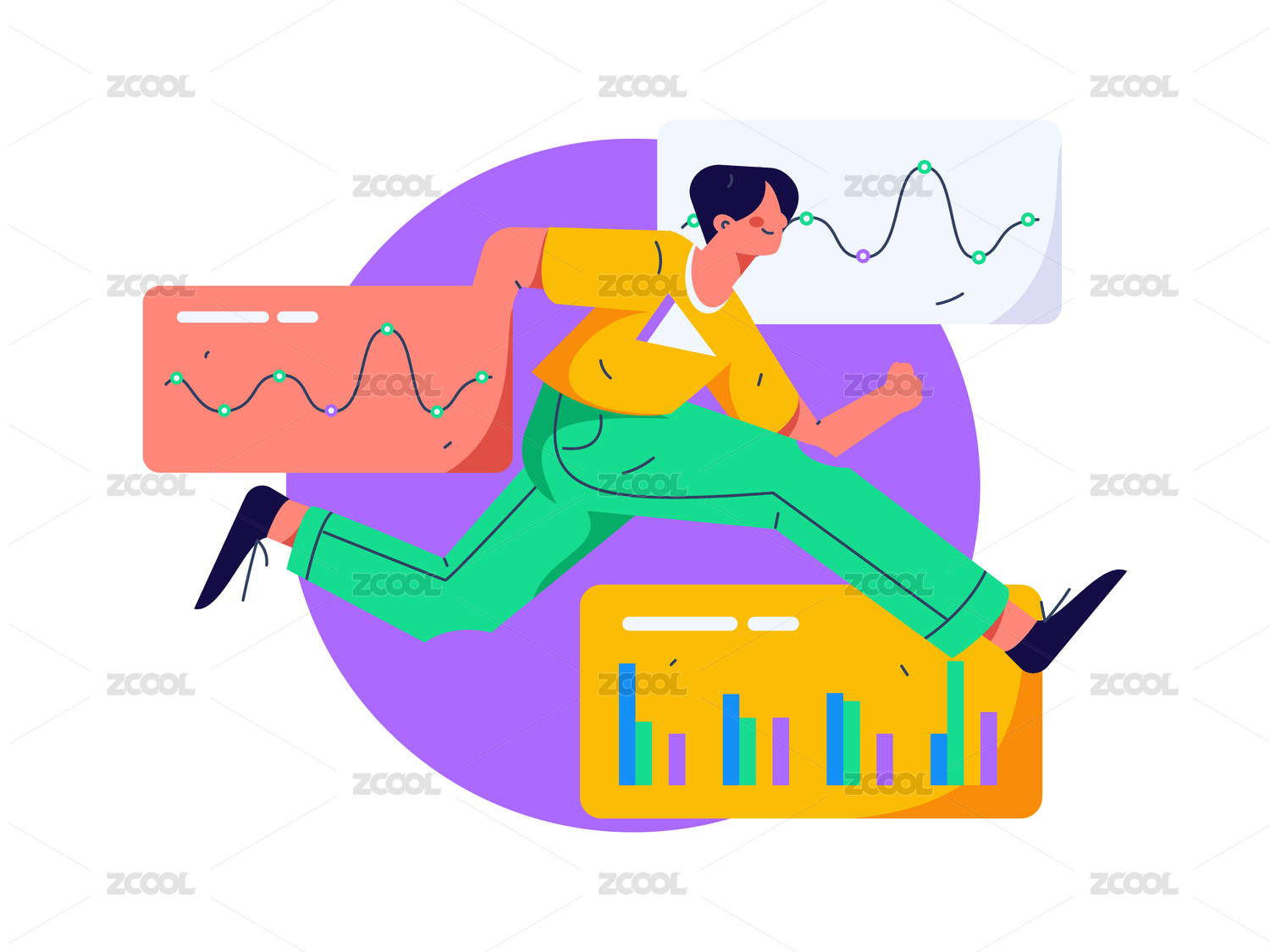 工作中的白领远程协作提高效率,矢量扁平概念清新插画