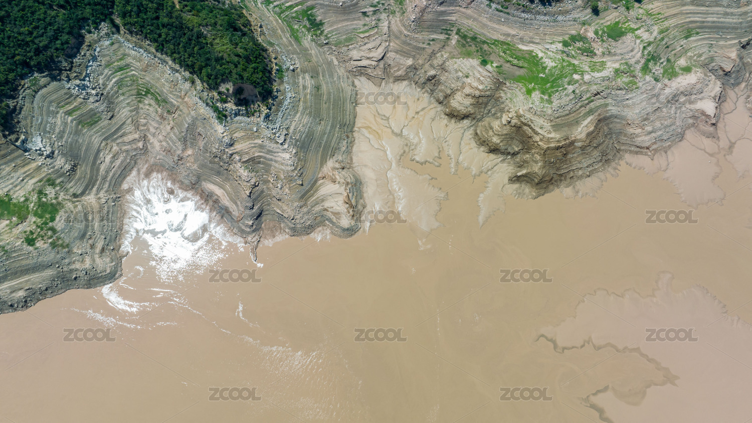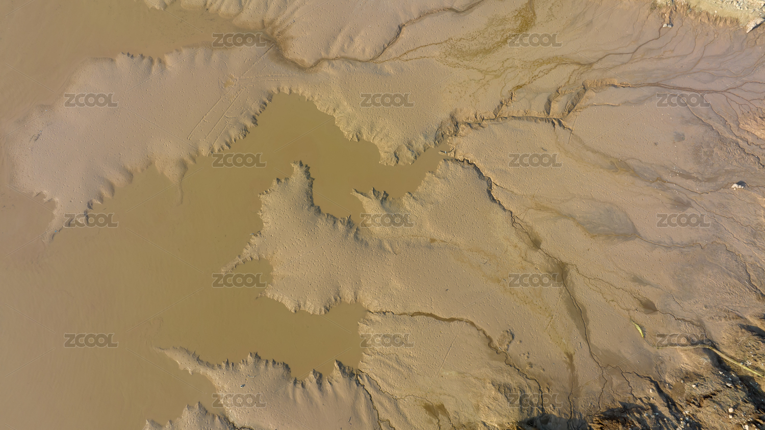 航拍夏季干旱的黄河河道泥沙滩涂