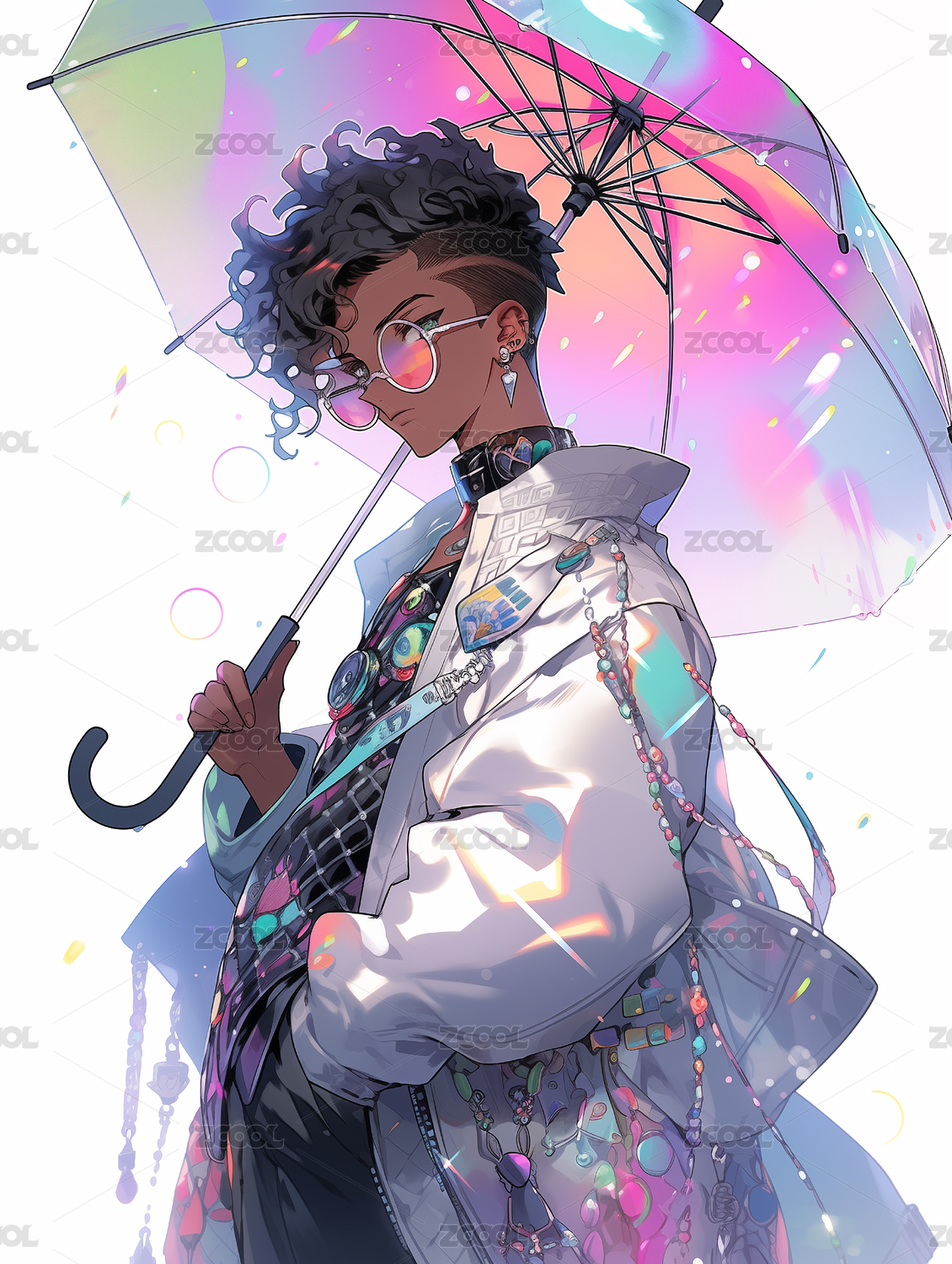 华丽,新潮,时尚,前卫,服饰,男孩,男人,打伞,伞,酷