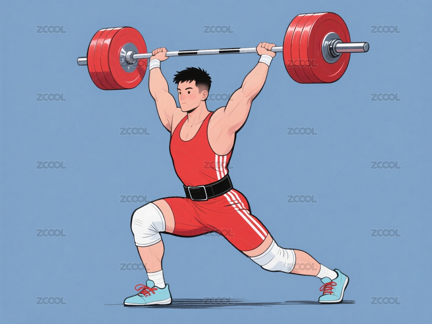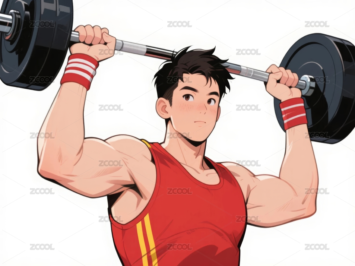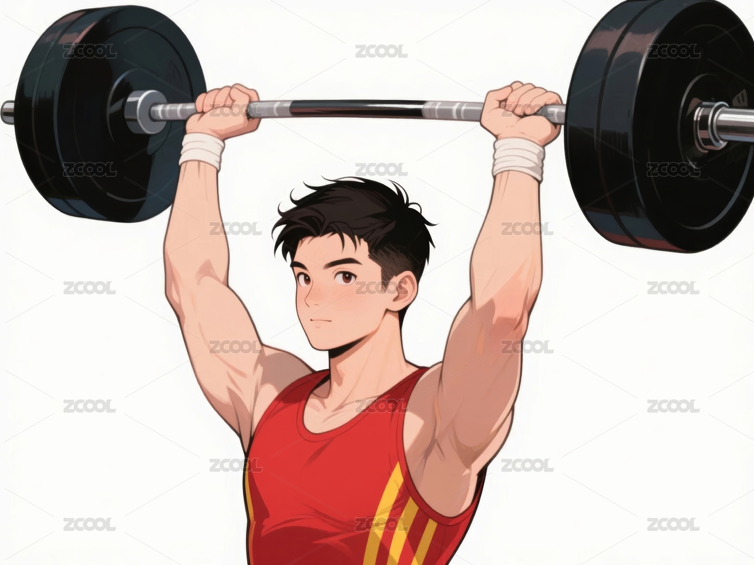 卡通,体育,运动,人物,男,比赛,AIGC202401,插画,举重