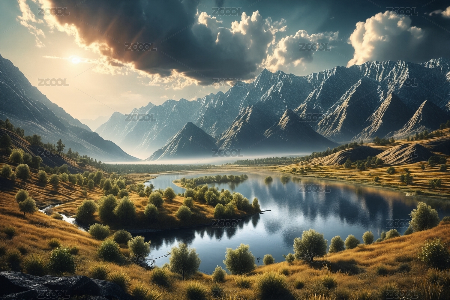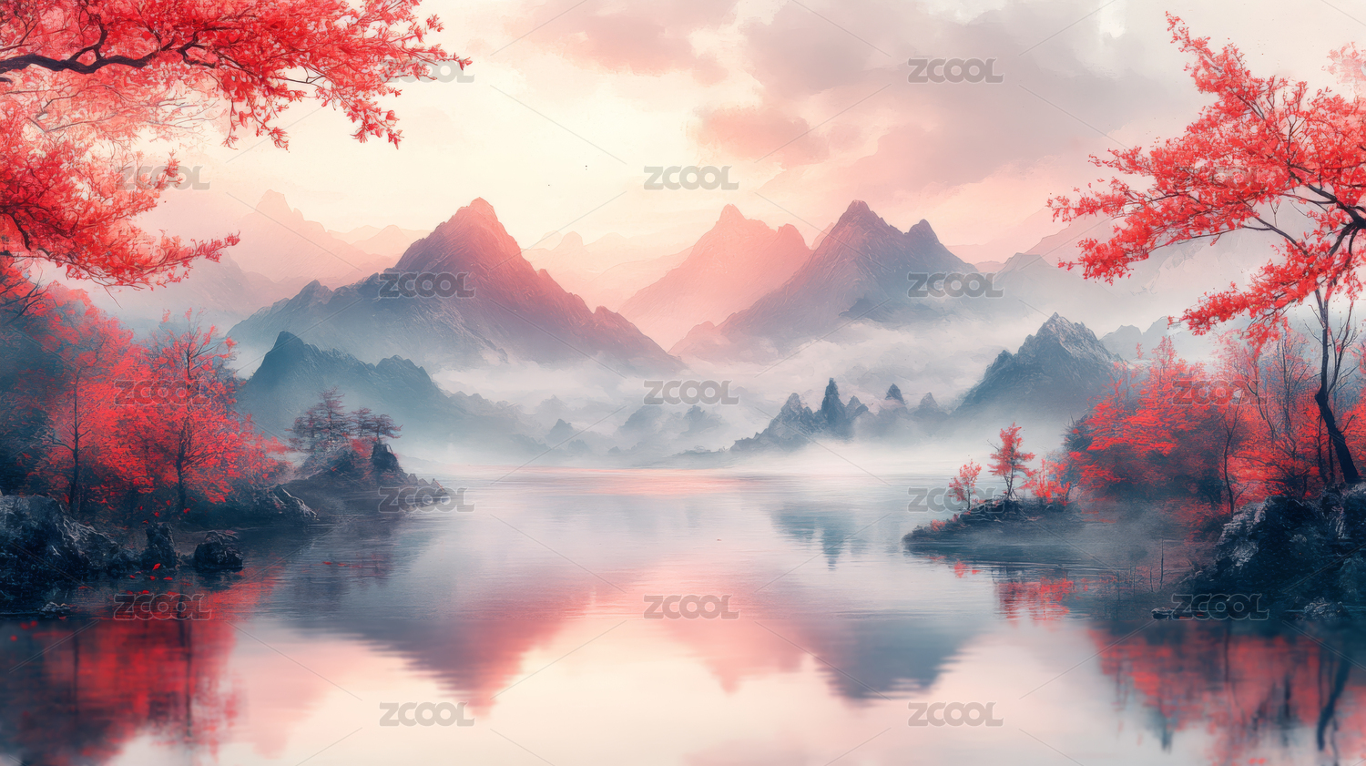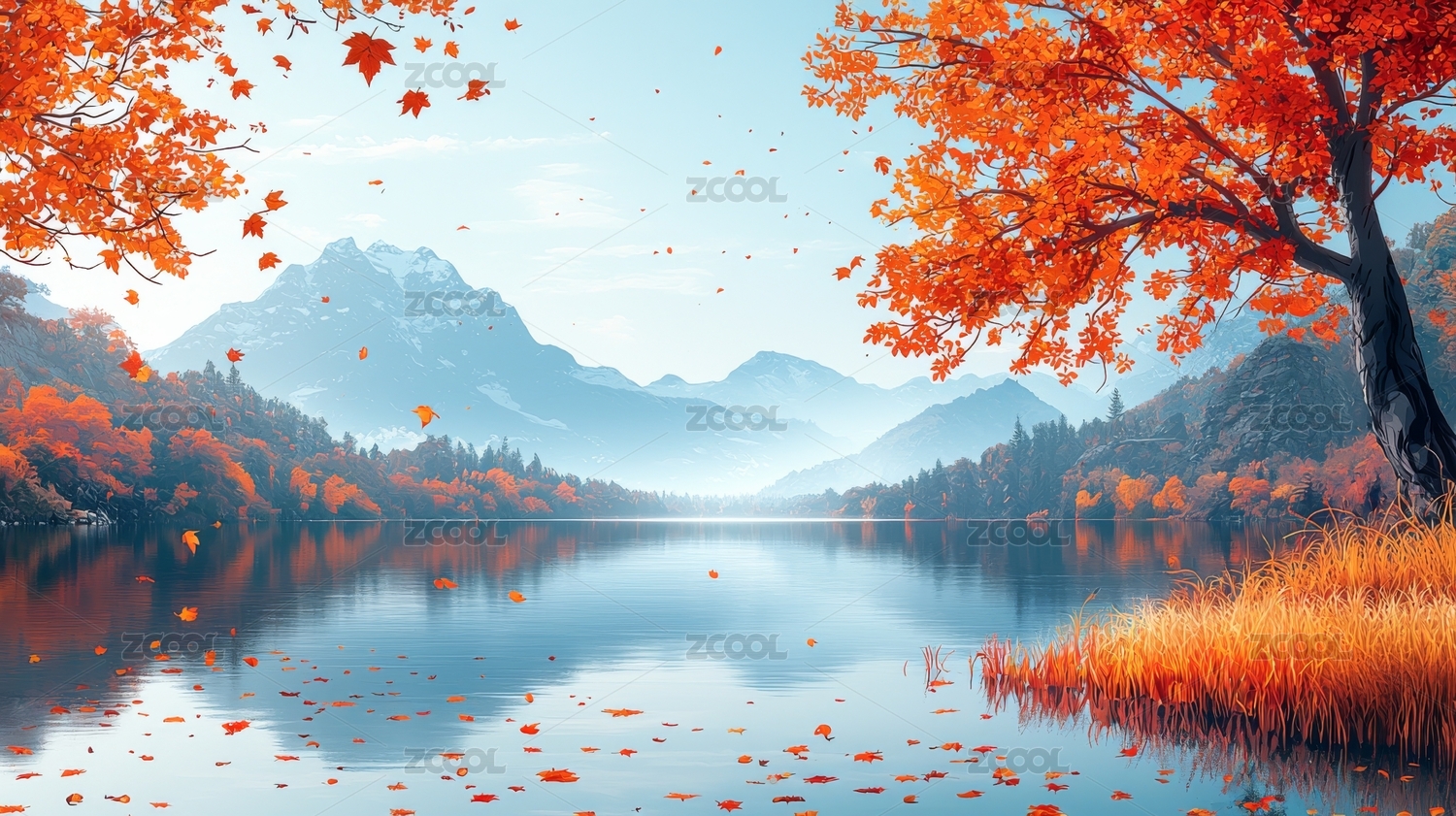 反射,宁静的湖泊,日落,五颜六色的树木,山,自然,景观,宁静,平静,水