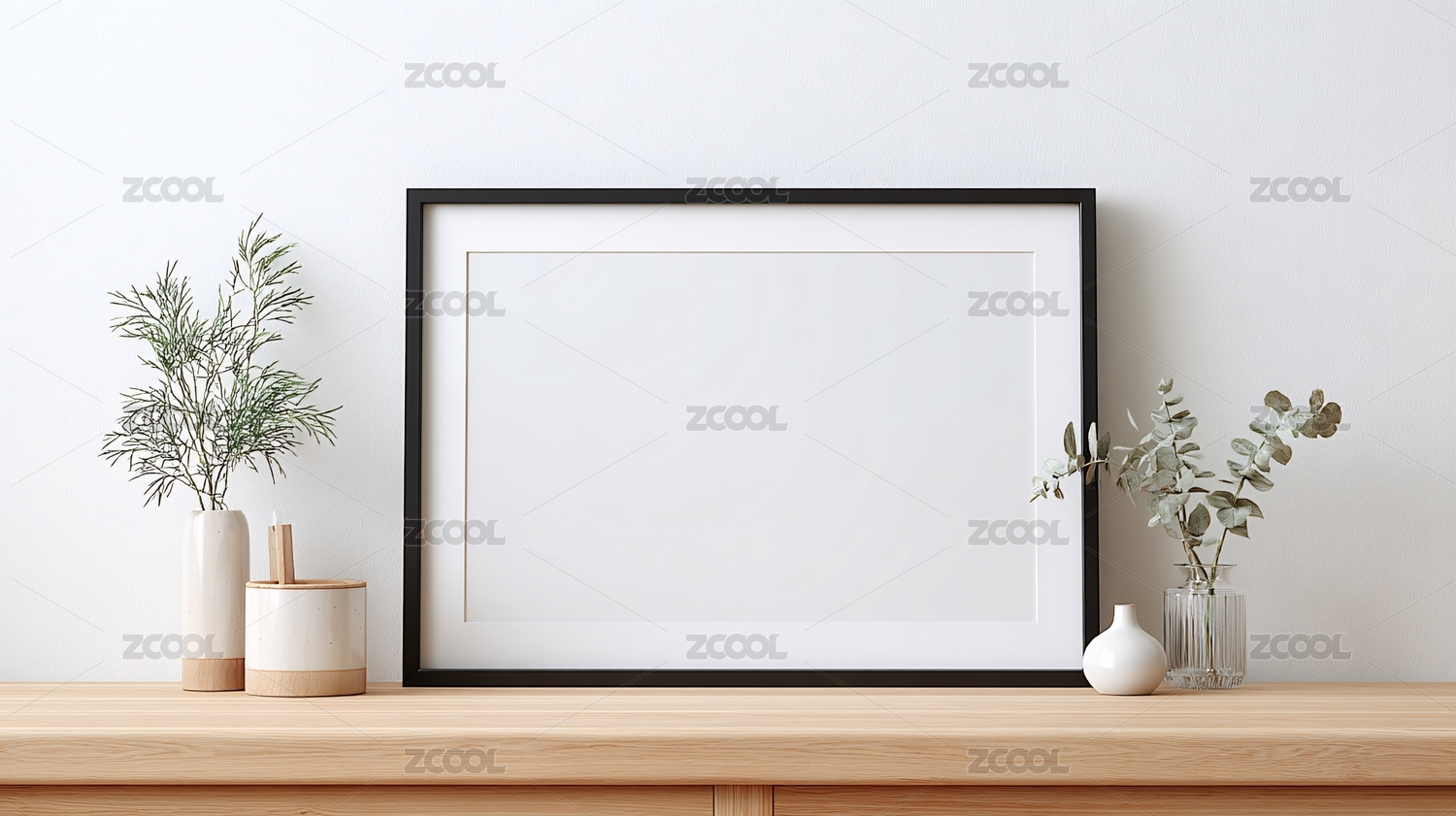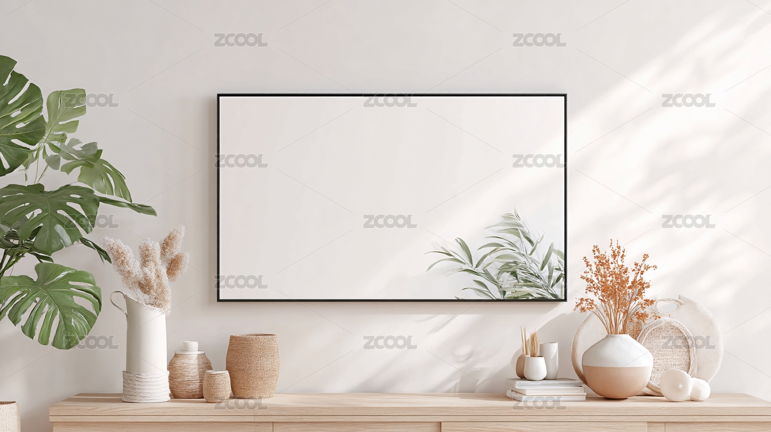 简约画框与绿植装饰场景