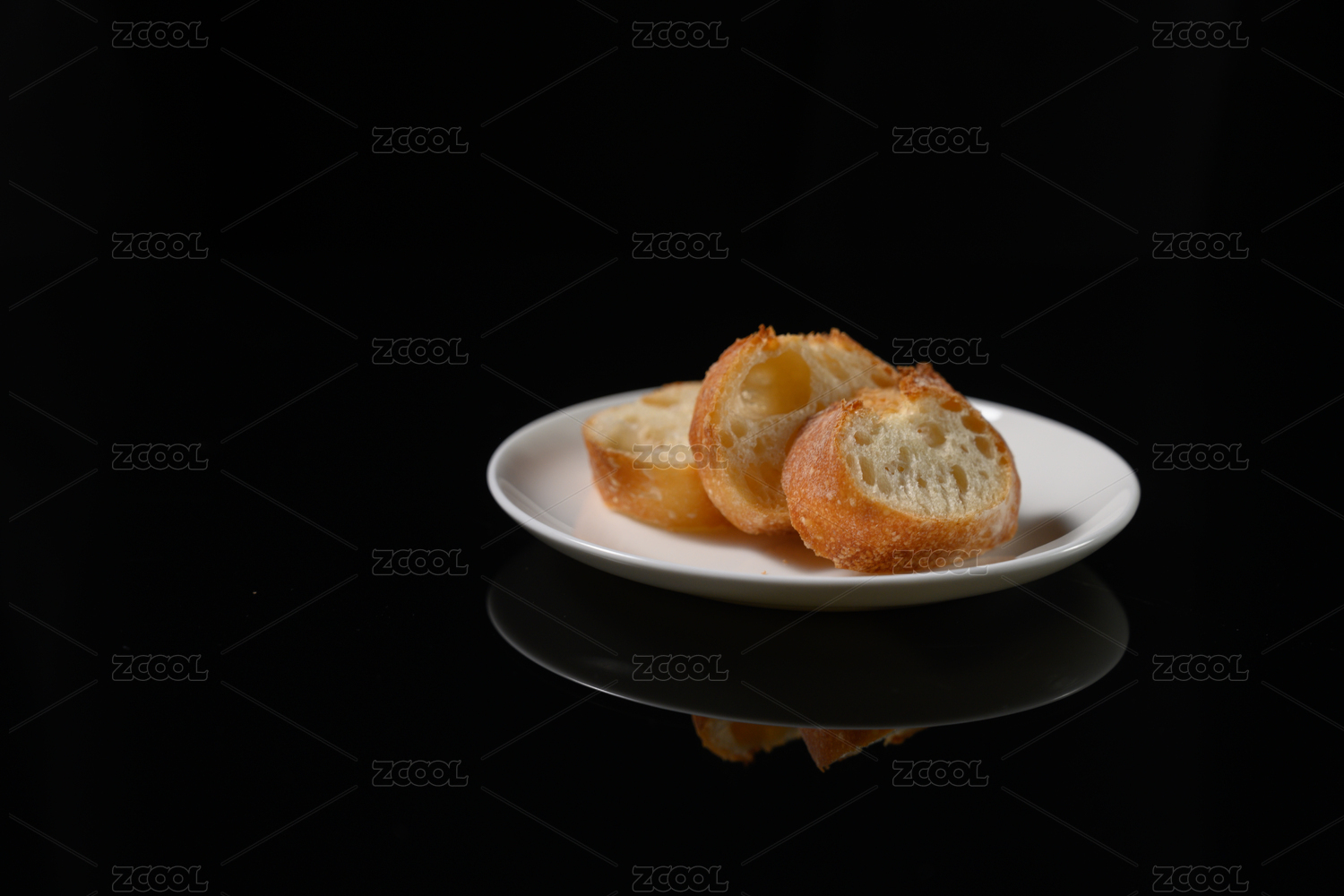 桌面上的盘子里的美味可口的法式面包片