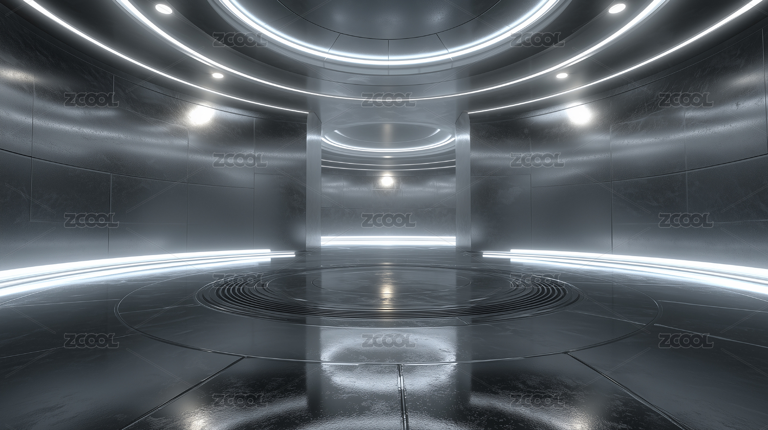 超现代AI界面房间金属墙