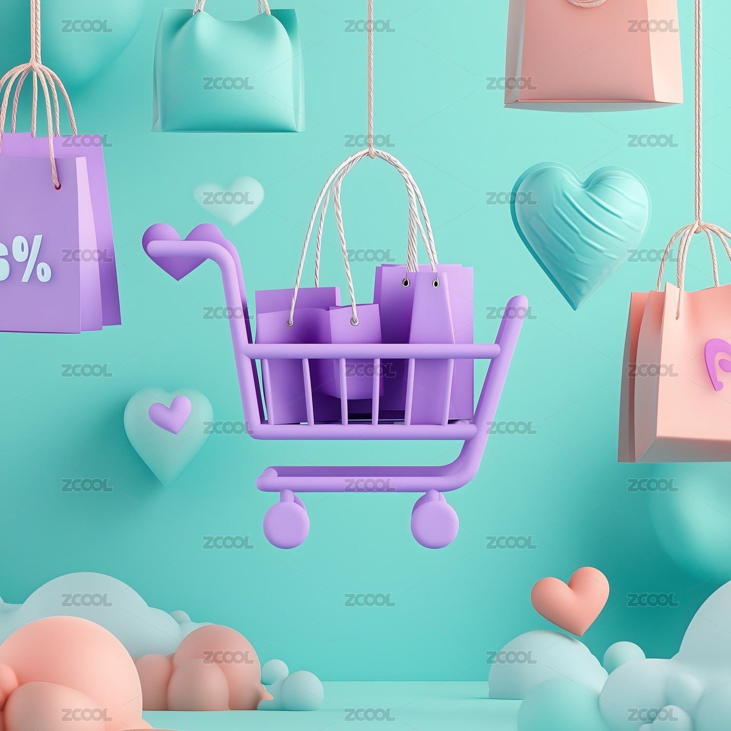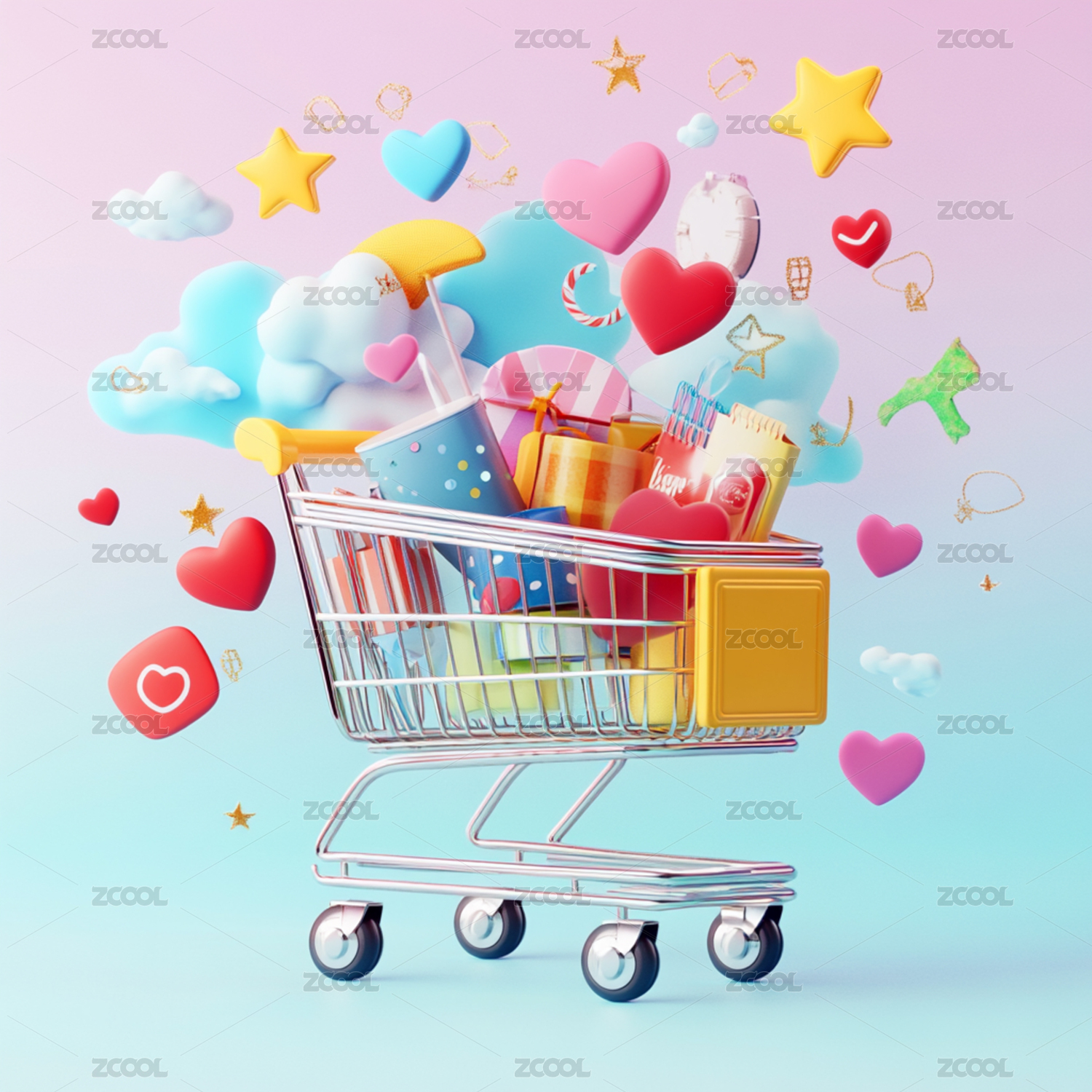 DXCZ202401,电商,双十一,购物,单身节,插画,购物车,篮子,商品,风格