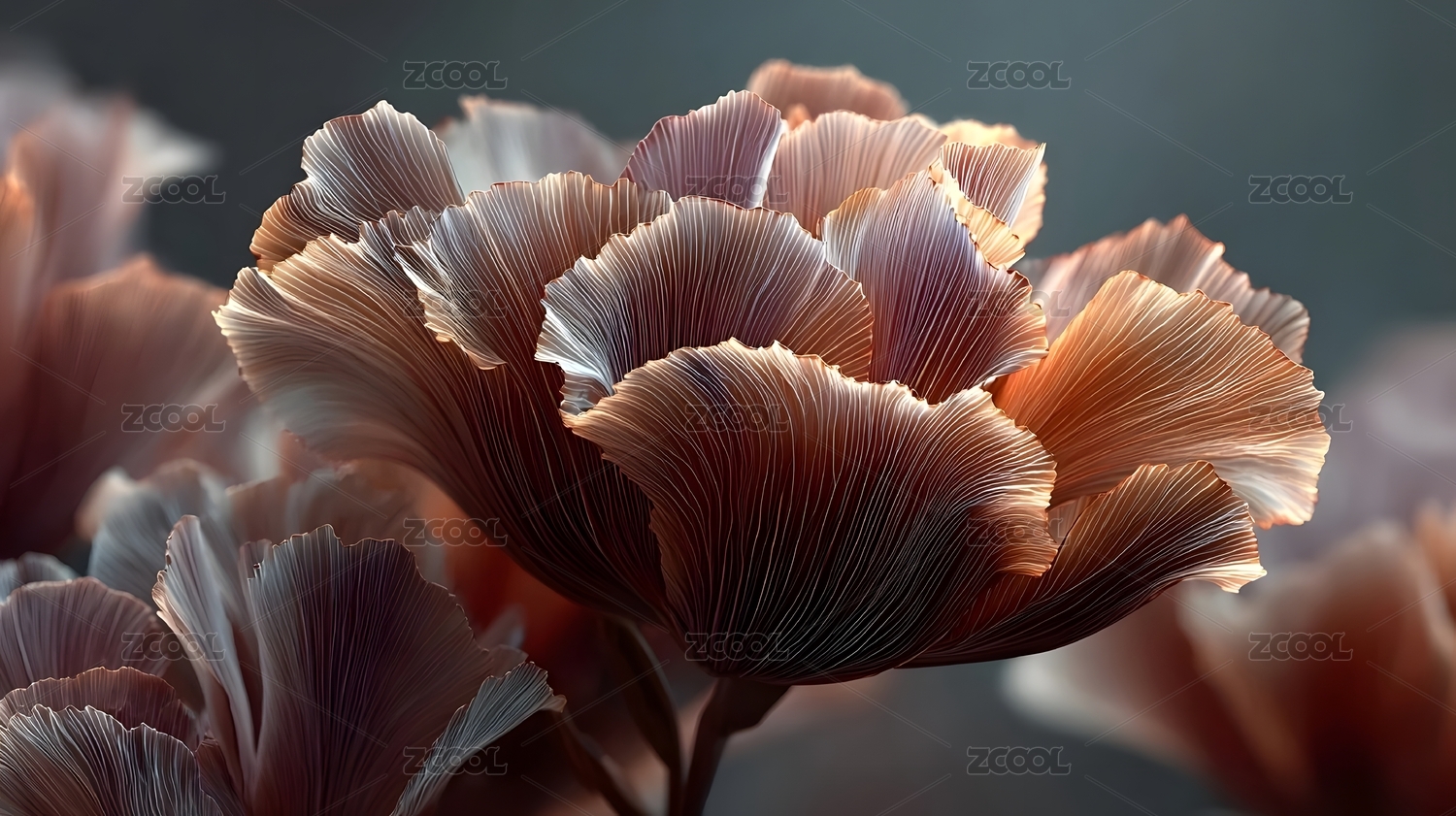 黑背景烟雾流动的荧光色3D全息透明花朵
