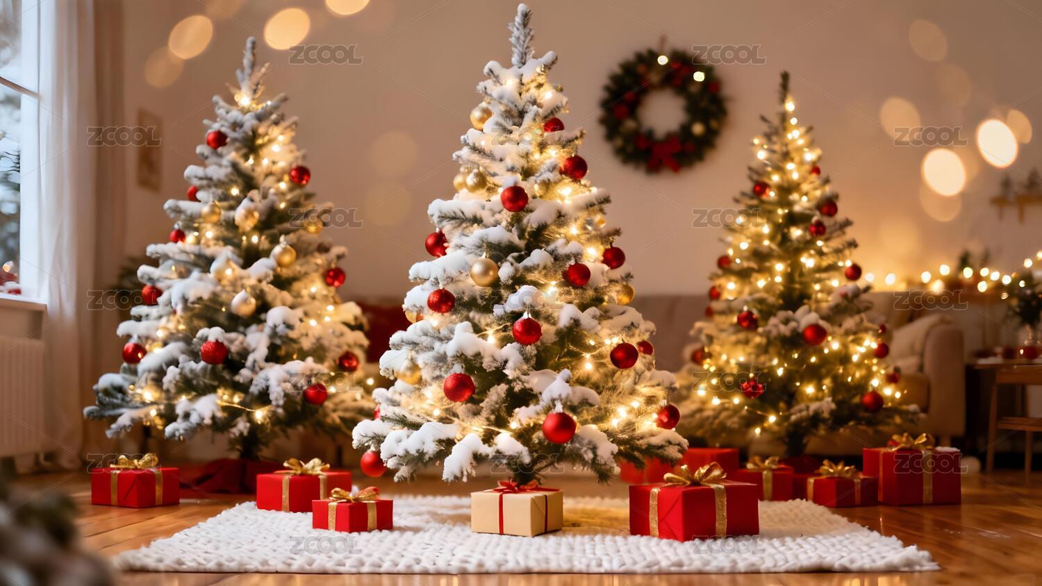 圣诞节在装饰过的圣诞树下在舒适的客厅里