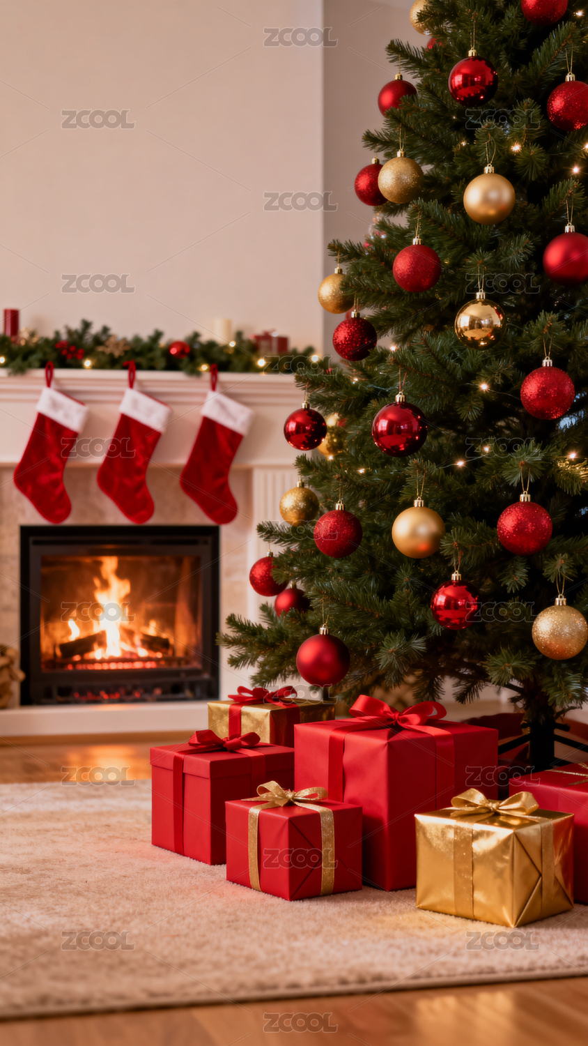 圣诞节,圣诞树,圣诞老人,麋鹿,壁炉,礼物,红绿配色,DXCZ202402,海报,设计