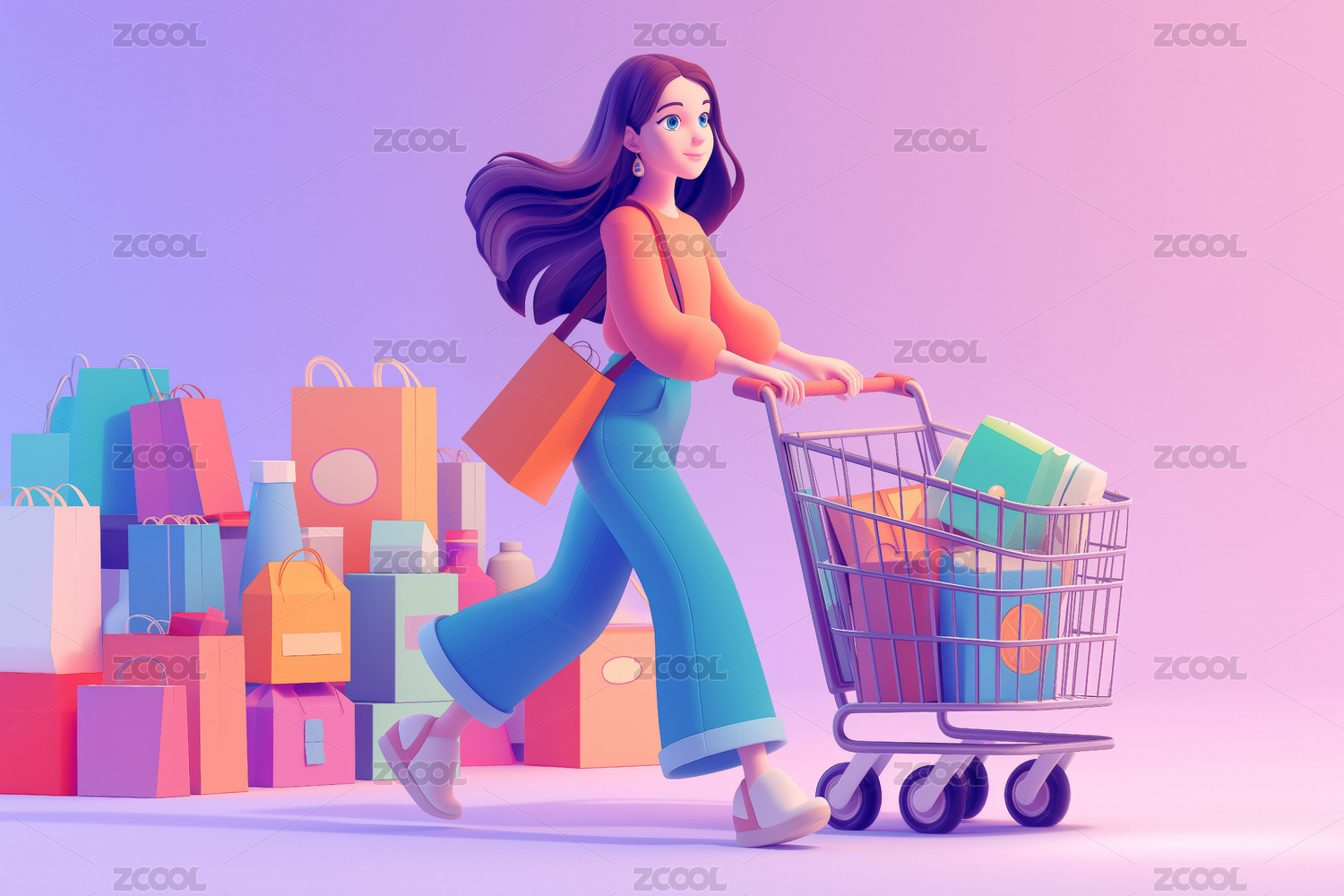 手绘,插画,设计,素材,购物,DXCZ202401,消费,创意