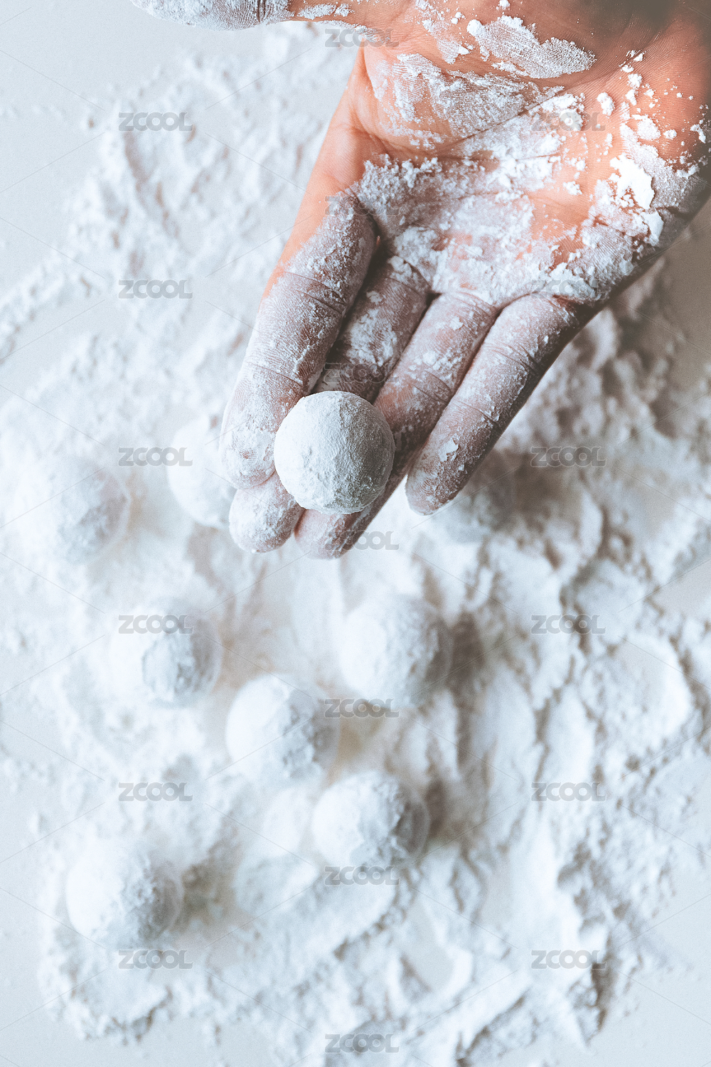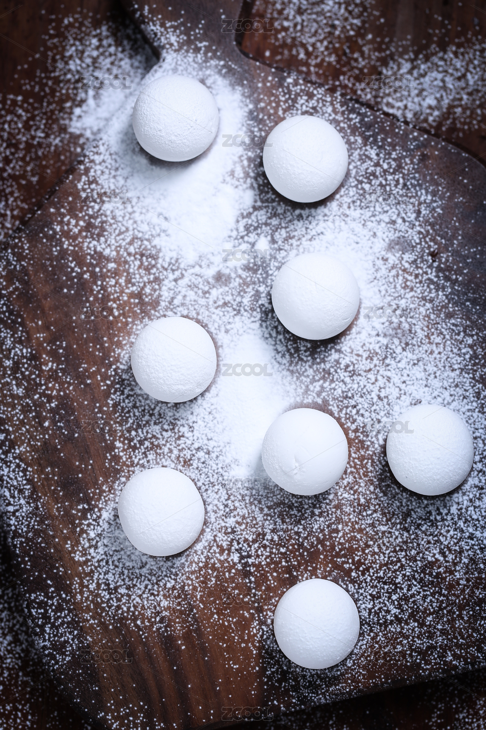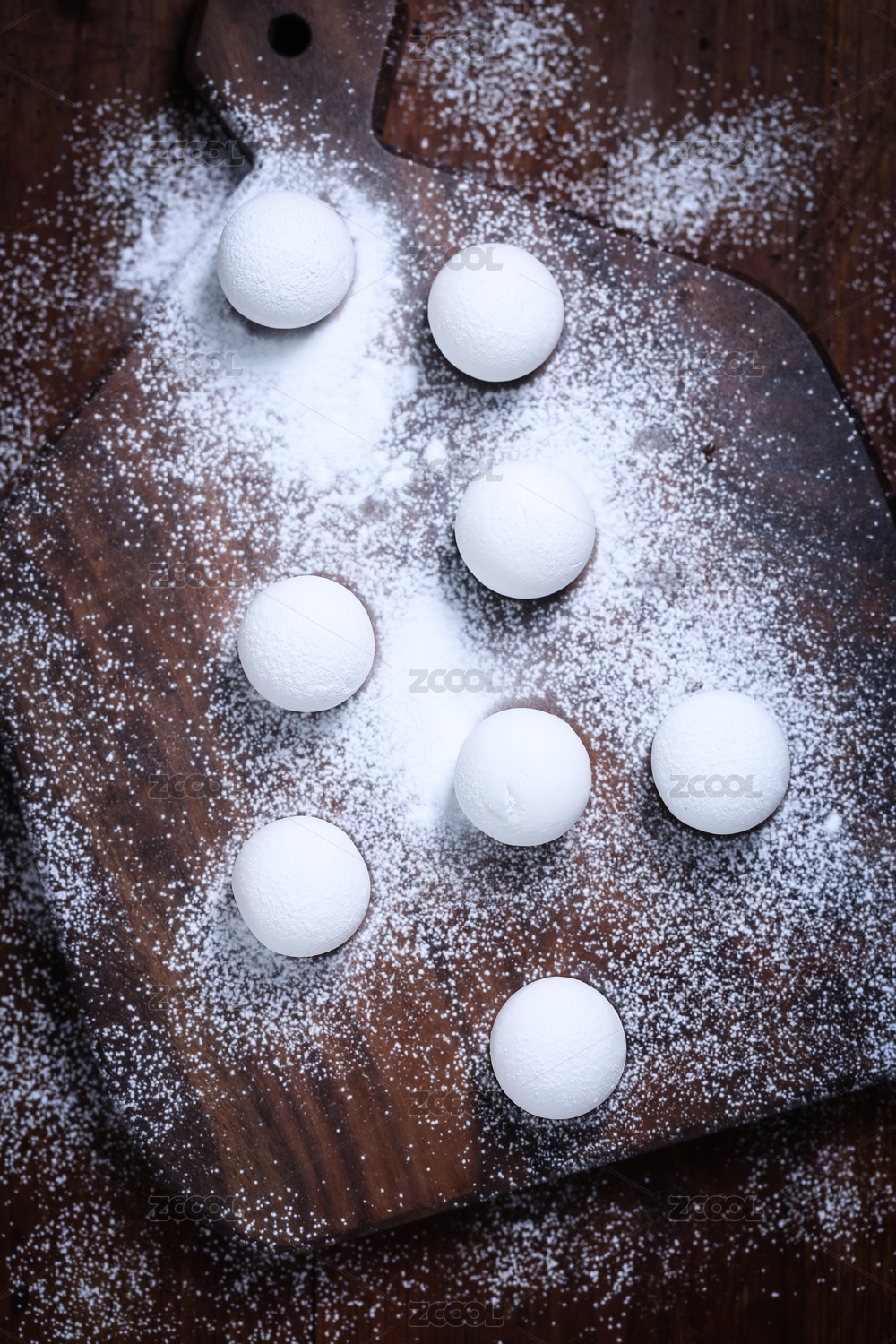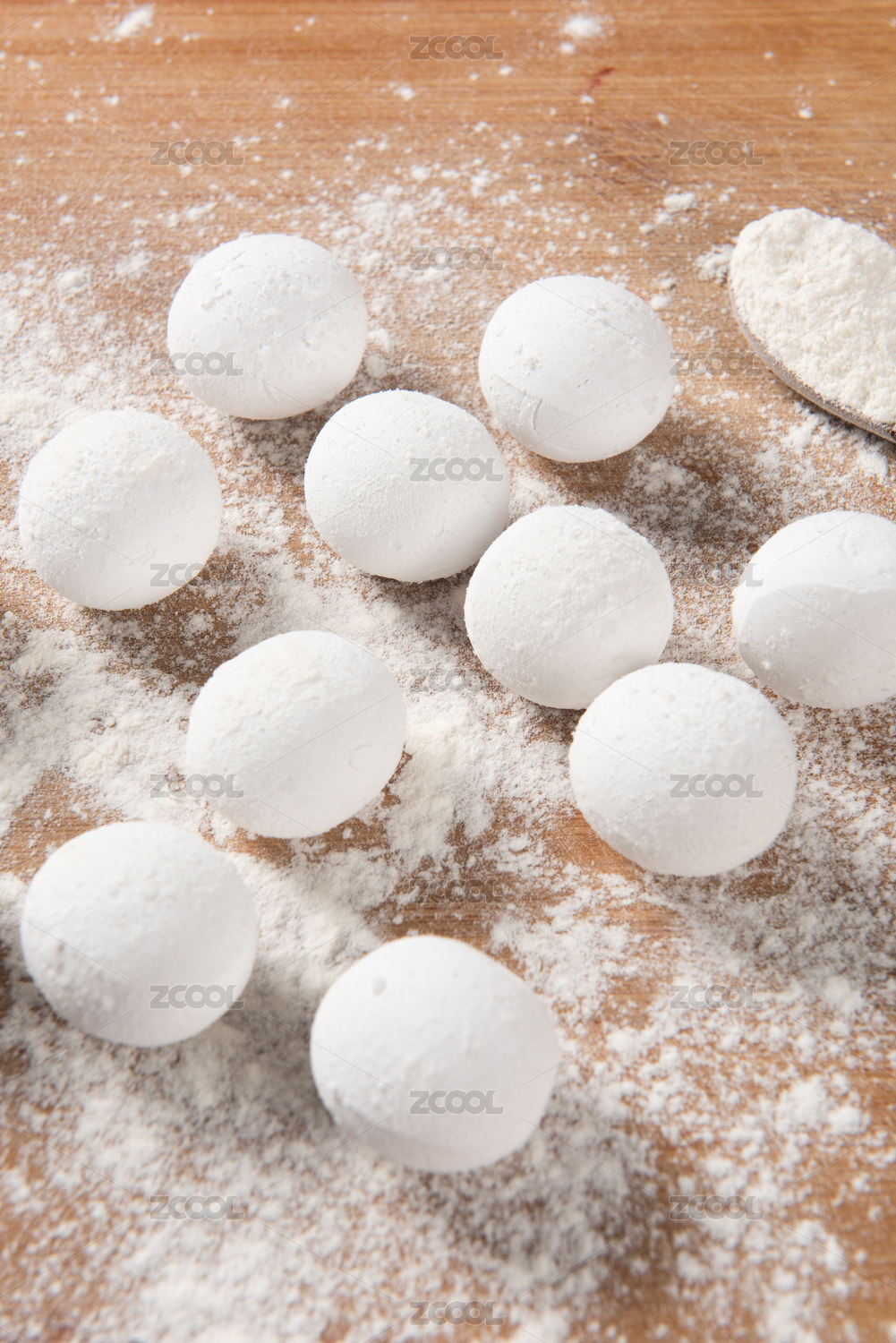 白色的汤圆和面粉