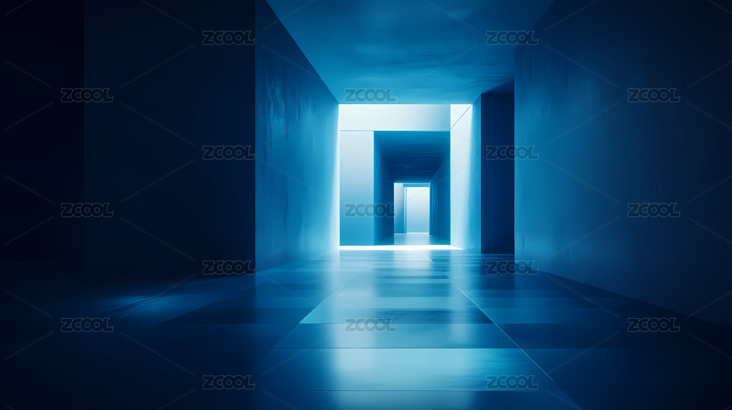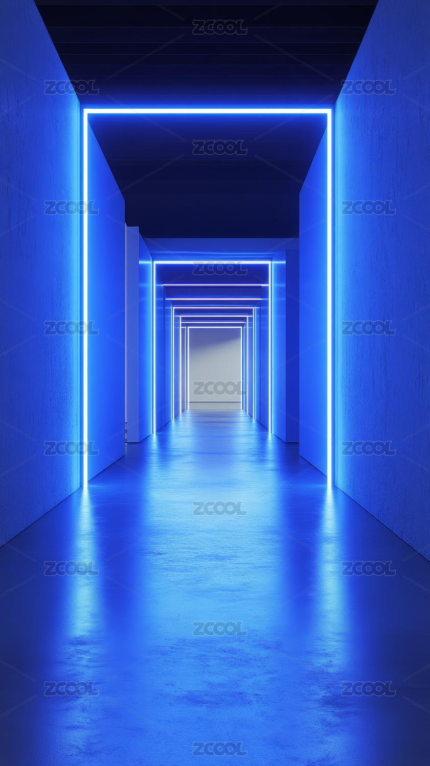 未来感蓝色走廊空间