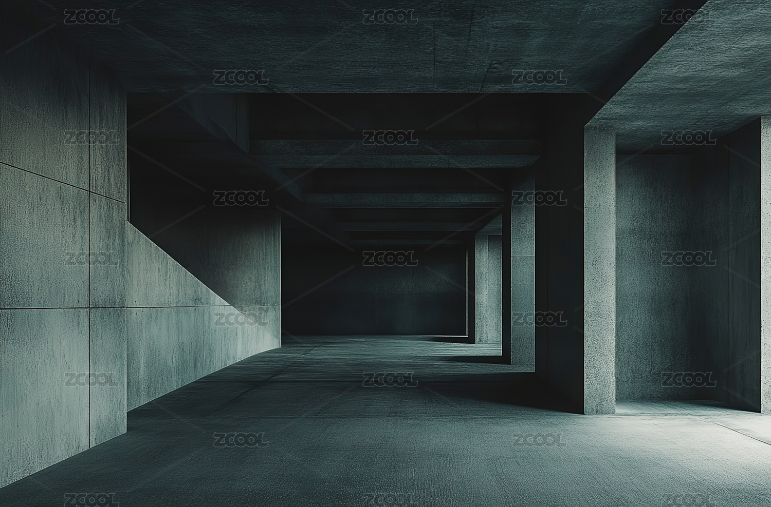 现代混凝土几何空间走廊