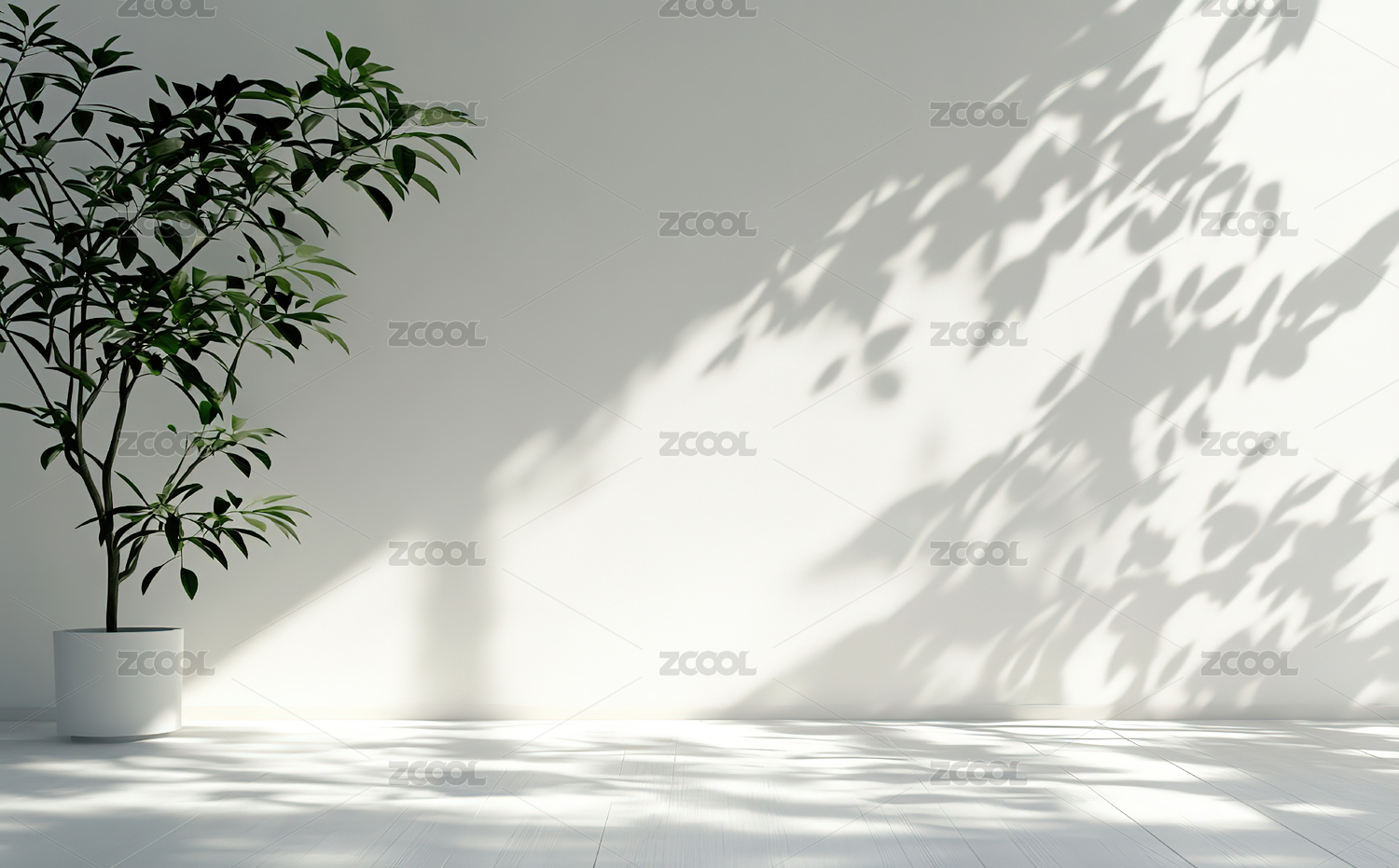 干净的室内白墙和绿植装饰简约空白渲染背景