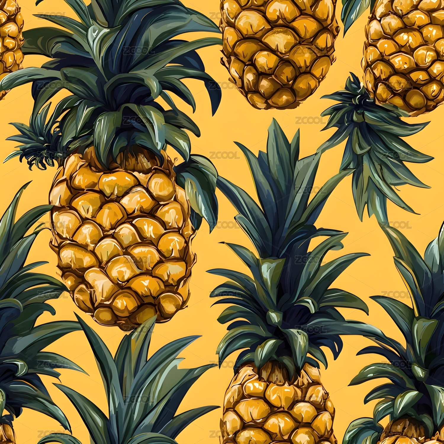 菠萝矢量图案 无限重复 无缝拼接