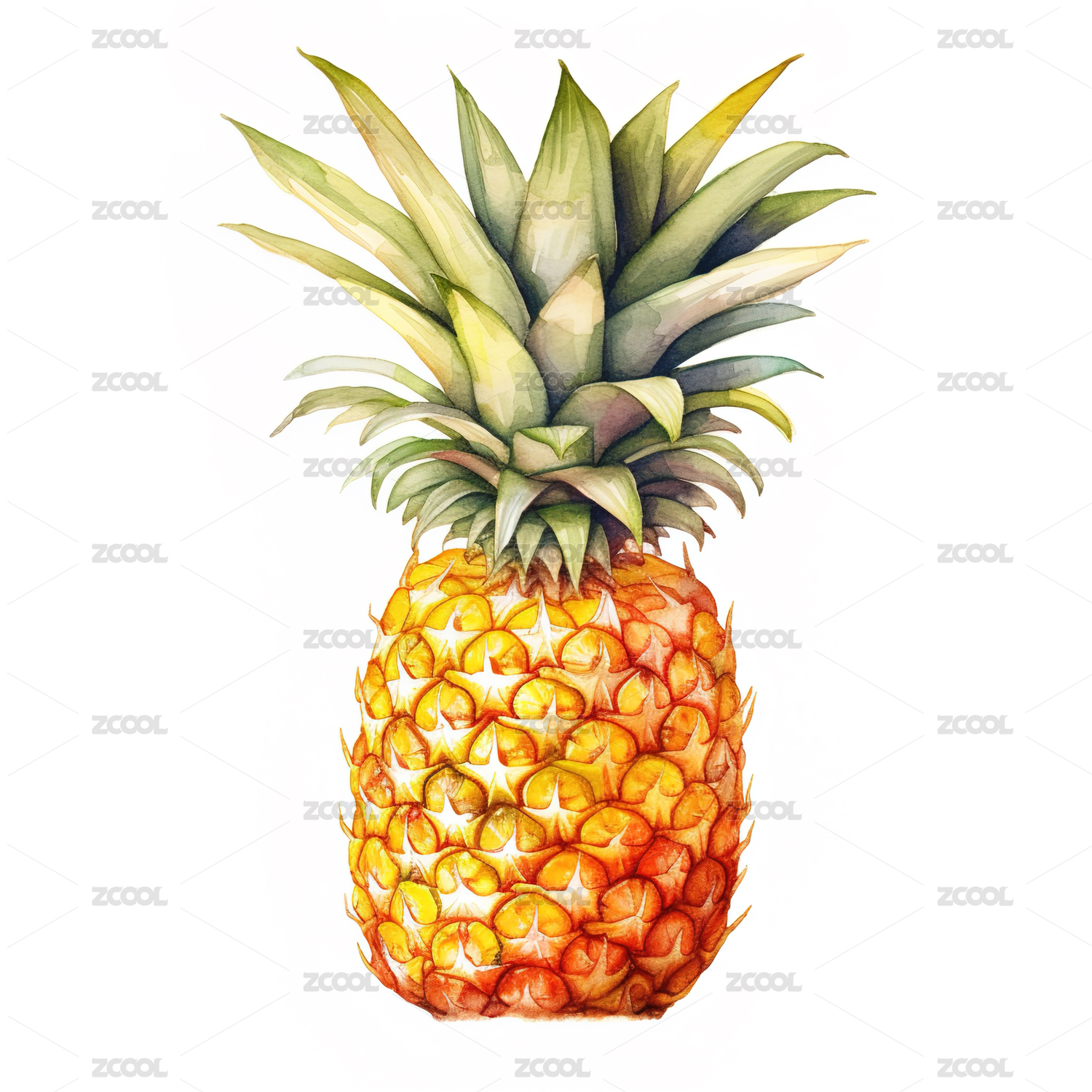 卡通水彩菠萝凤梨插画