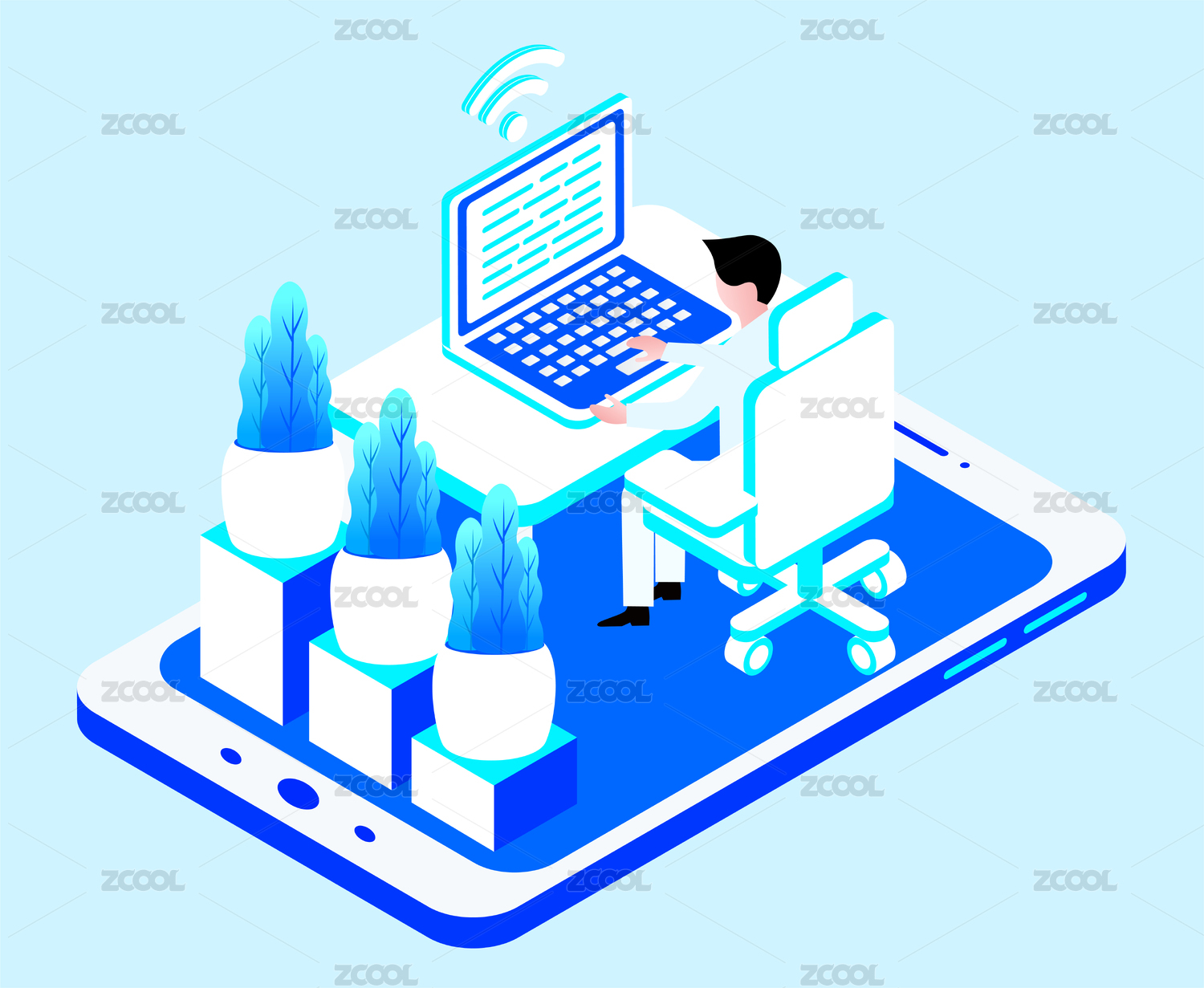 移动办公矢量插画素材