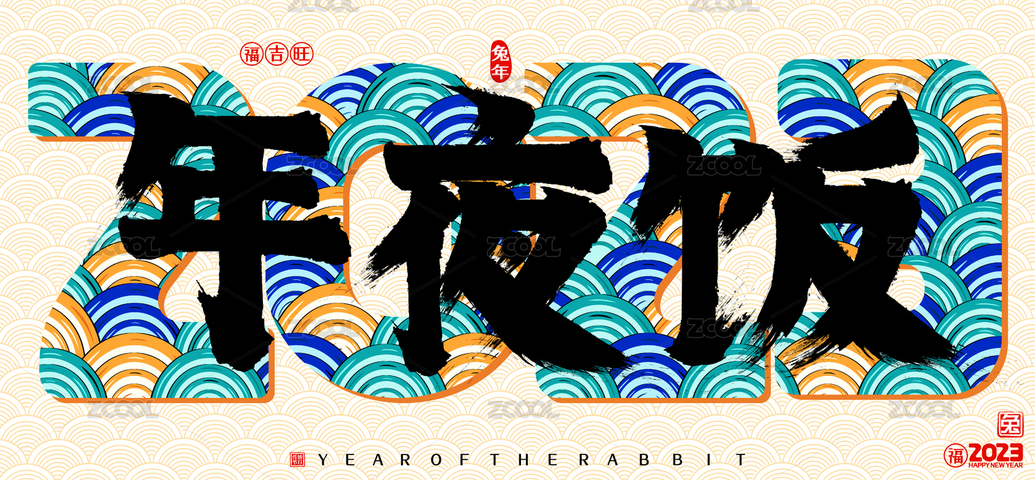 2023兔年年夜饭简约国潮云纹矢量书法字