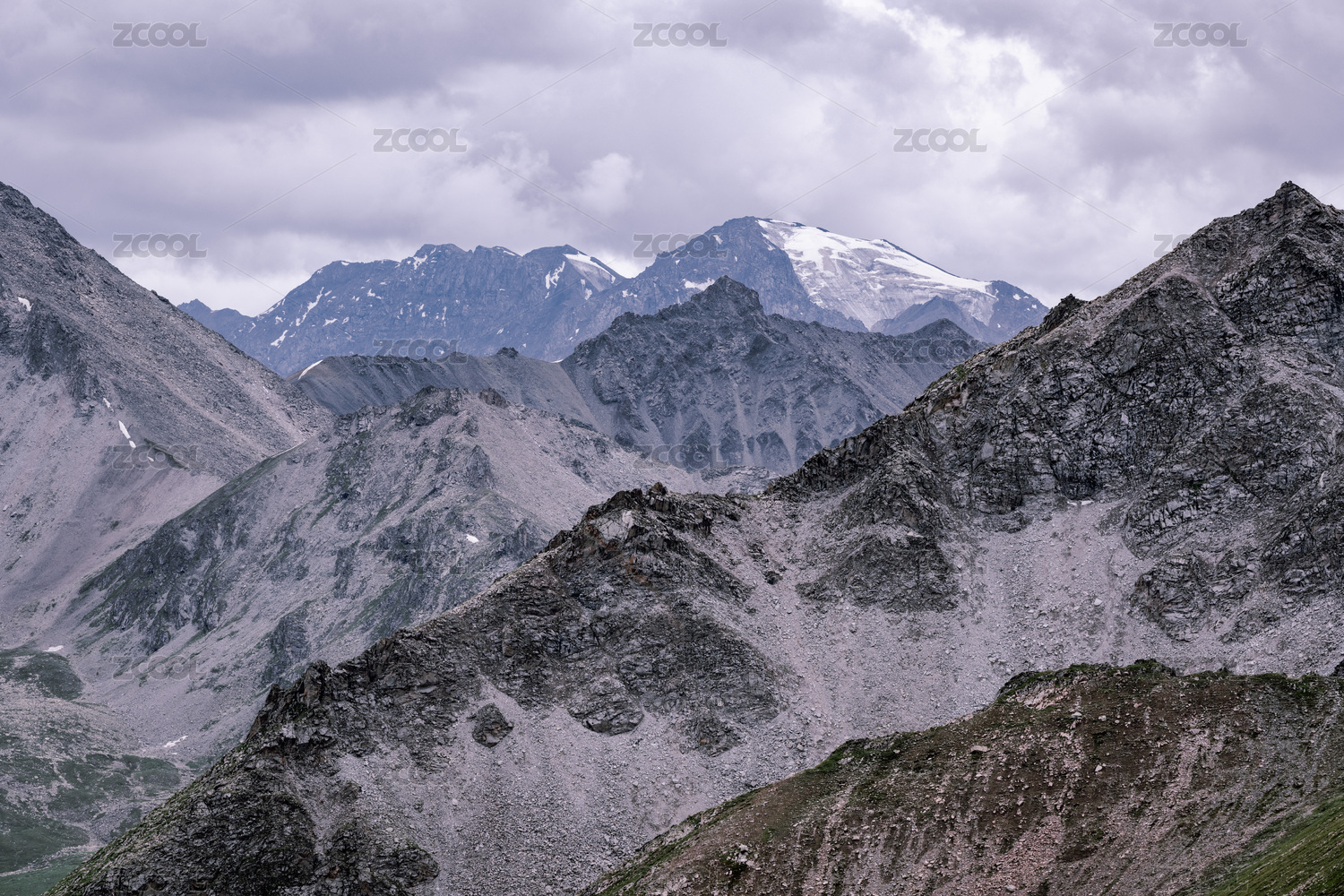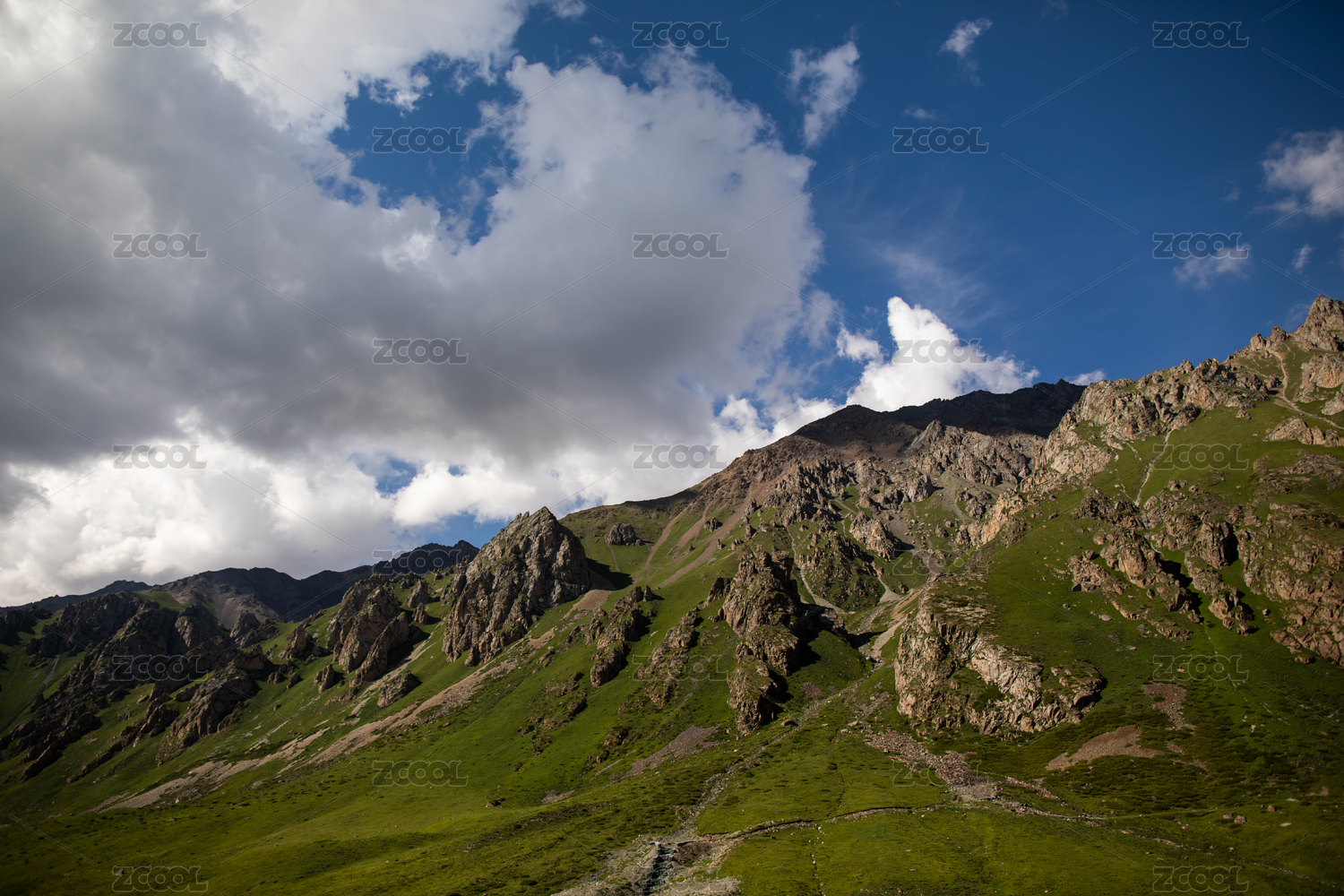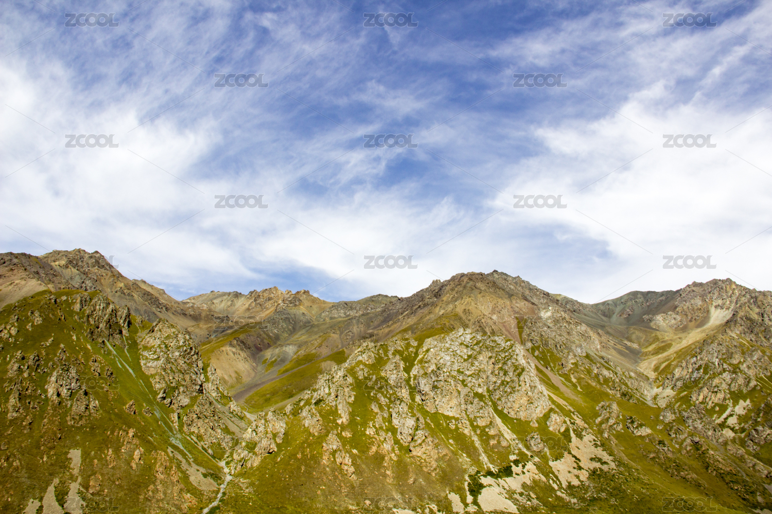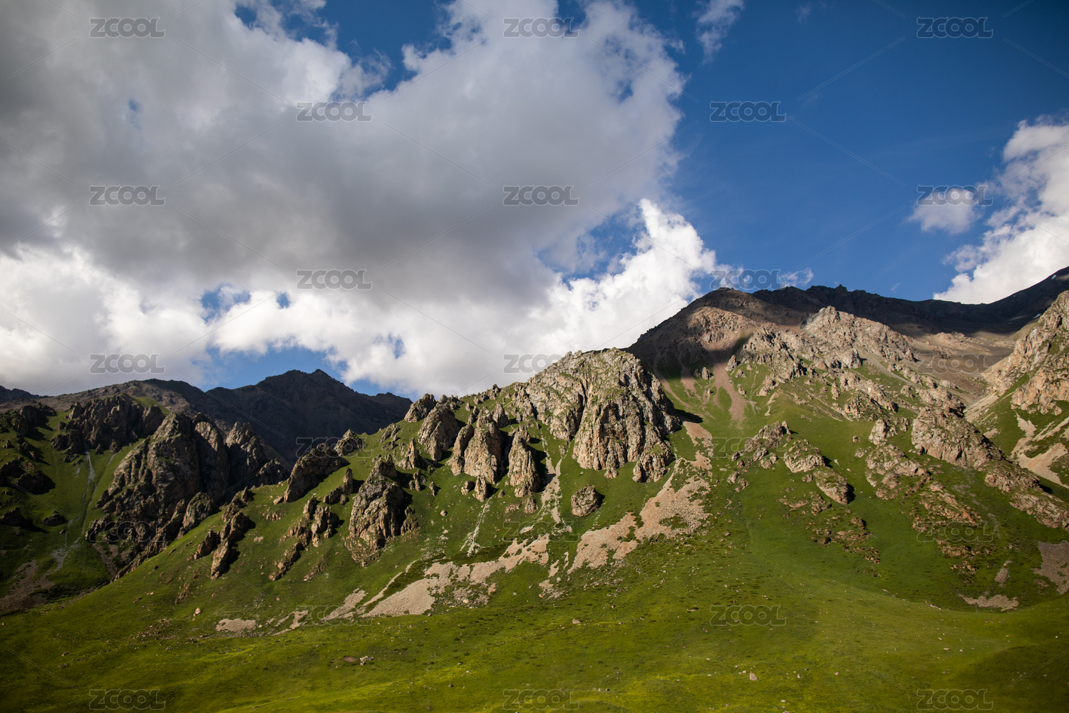 中国新疆独库公路上的天山,怪石嶙峋的山体