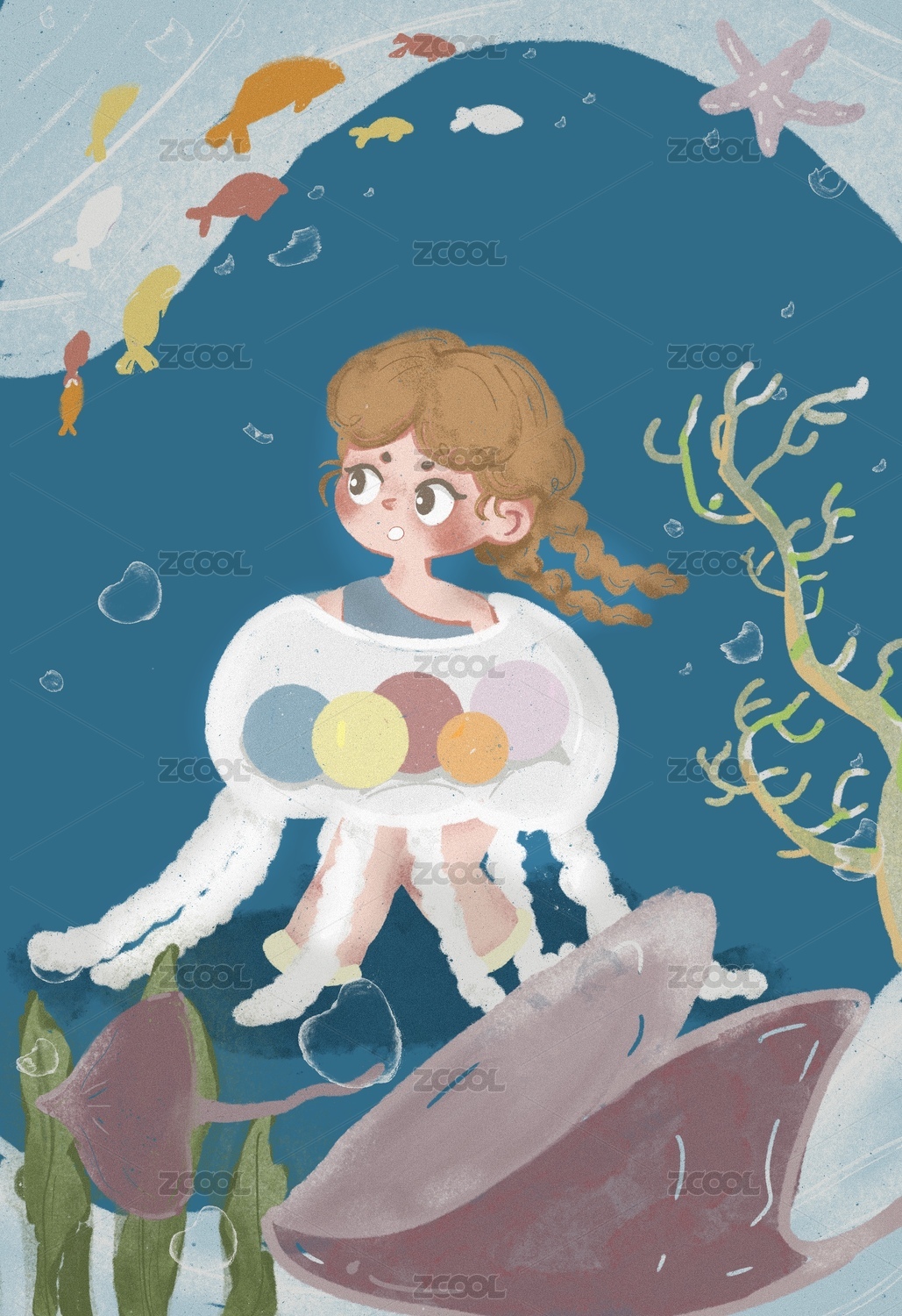 儿童插画,诗歌,童趣,绘本,插画,海洋,大海,海底