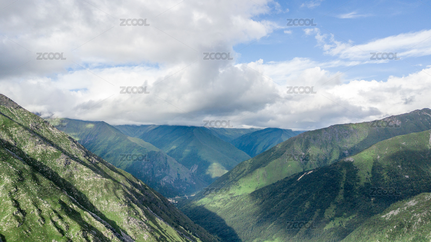 松潘县牟尼沟景区夏季山川光影航拍