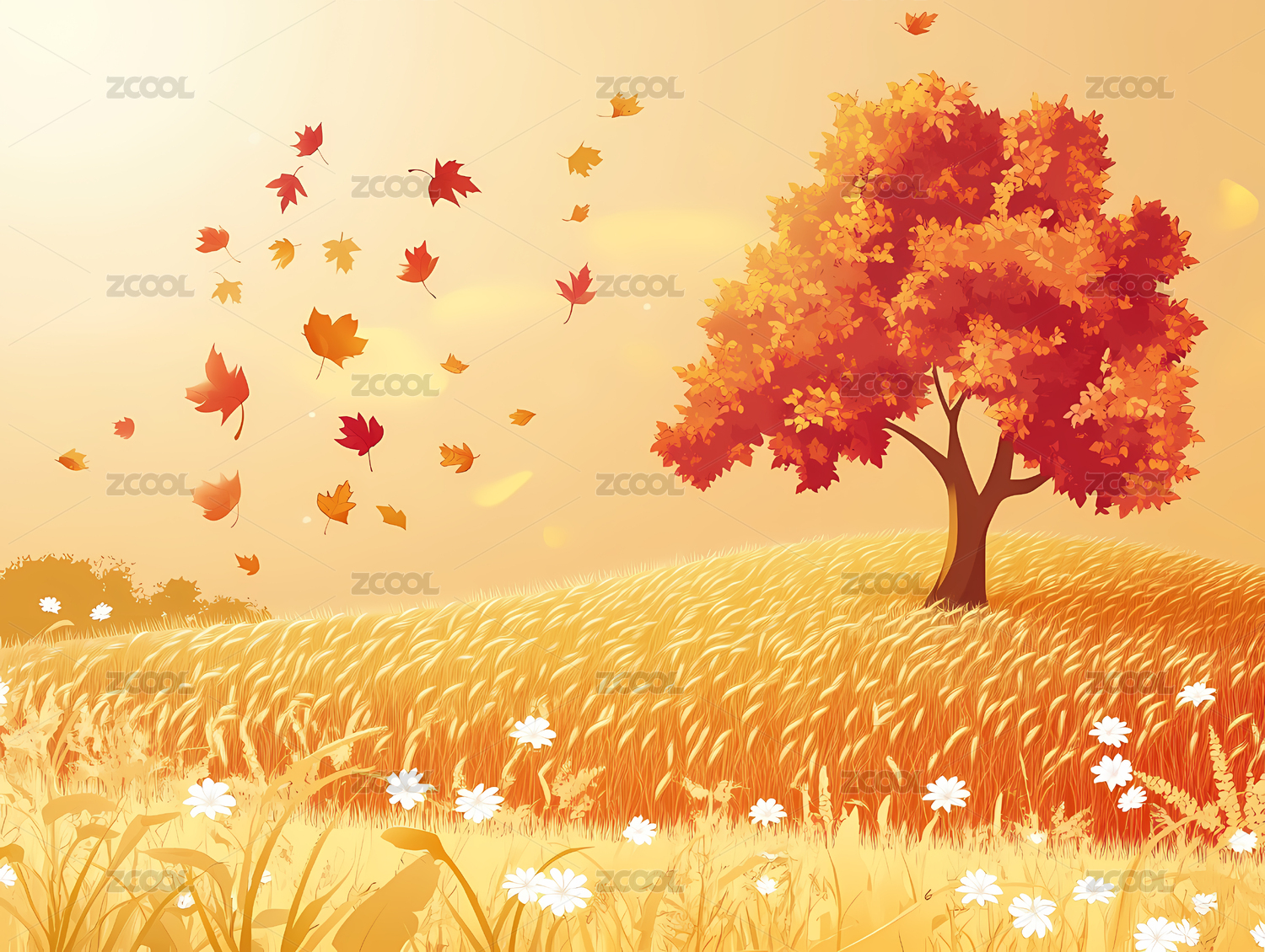 秋天秋季立秋秋分自然户外风景卡通漫画插画