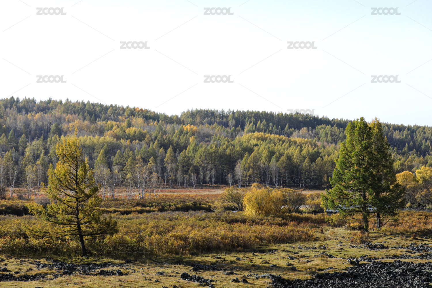 内蒙古阿尔山秋天里金黄色森林树木风景